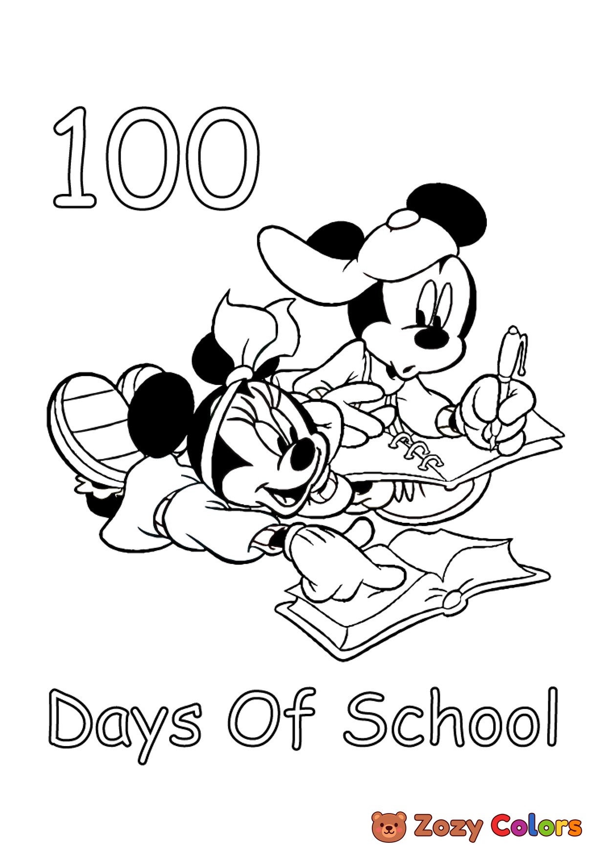 Minnie and Mickey in School. Coloring page to print or download and color for your kids.