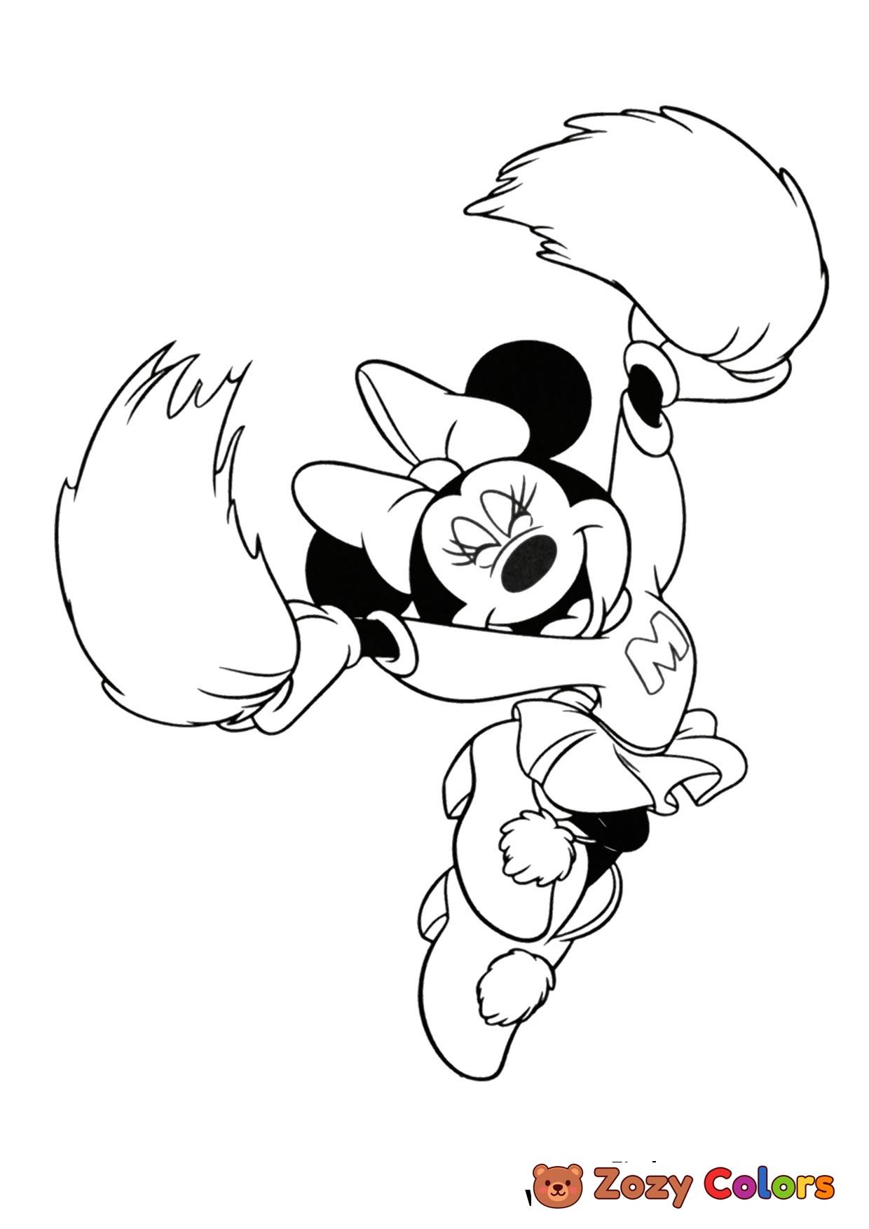 Minnie Mouse cheerleader dancing happy. Coloring page to print or download and color.