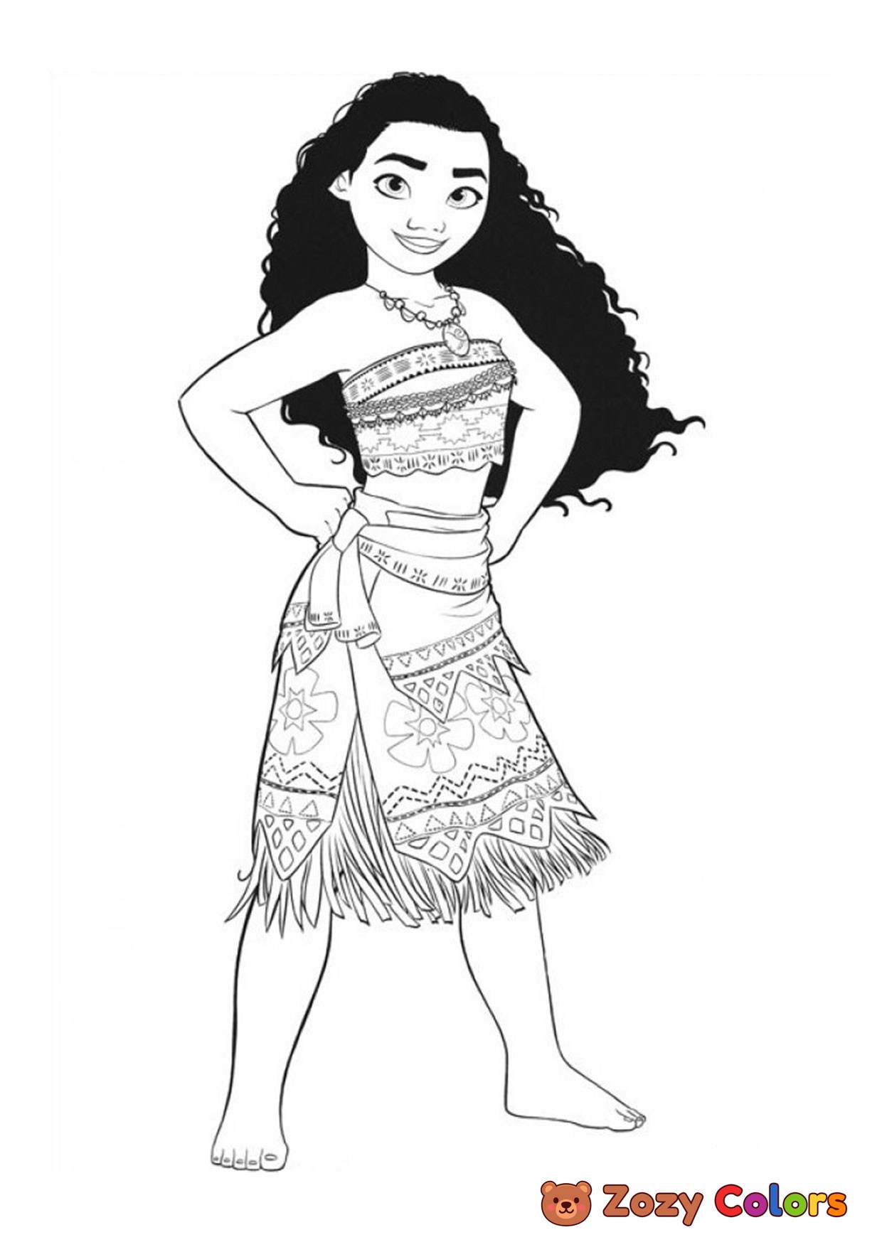 Moana Disney princess. Coloring page to print or download and color for your kids.
