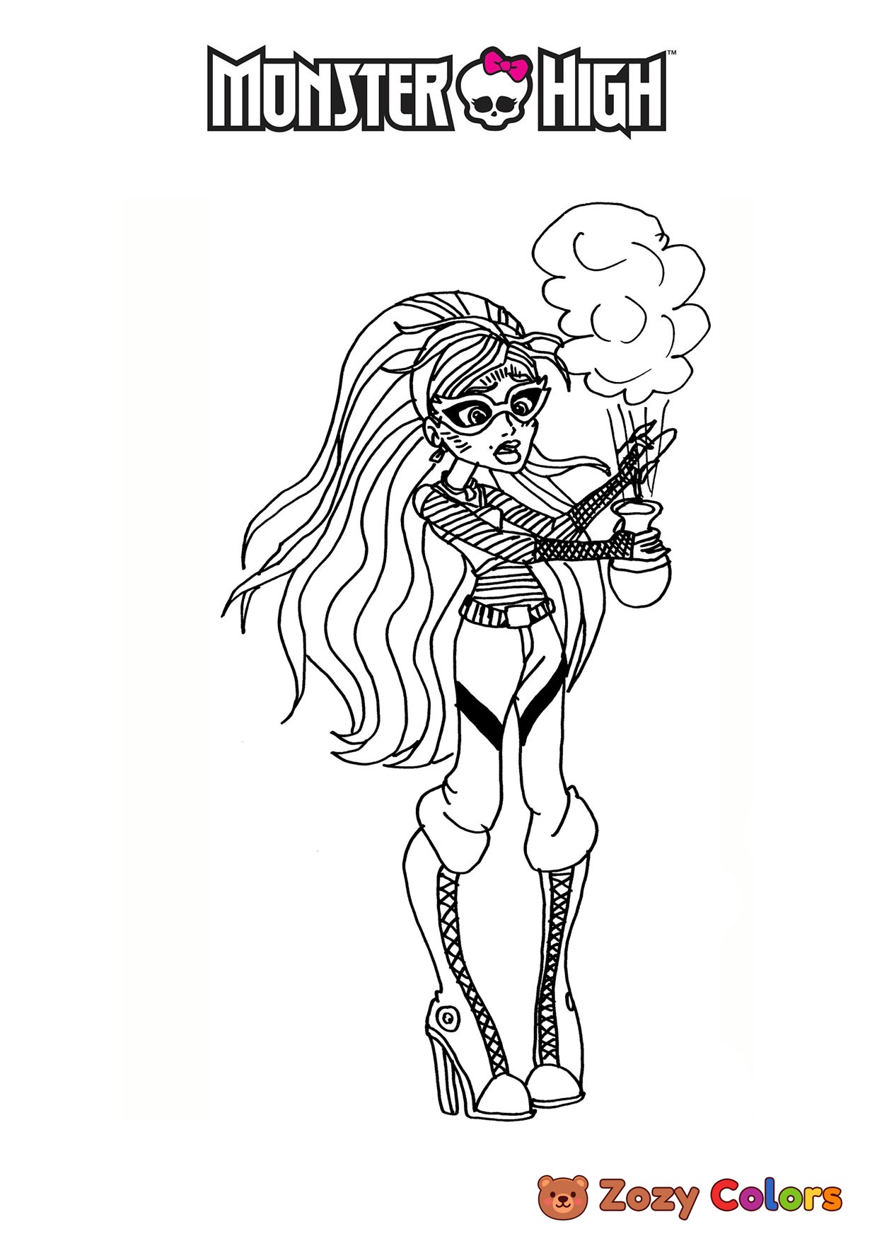 Monster High Ghoulia. Coloring page to print or download and color for your kids.