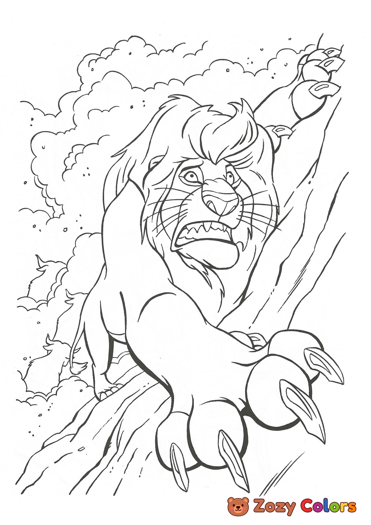 Mufasa falling from the mountain. Coloring page to print or download and color for your kids.