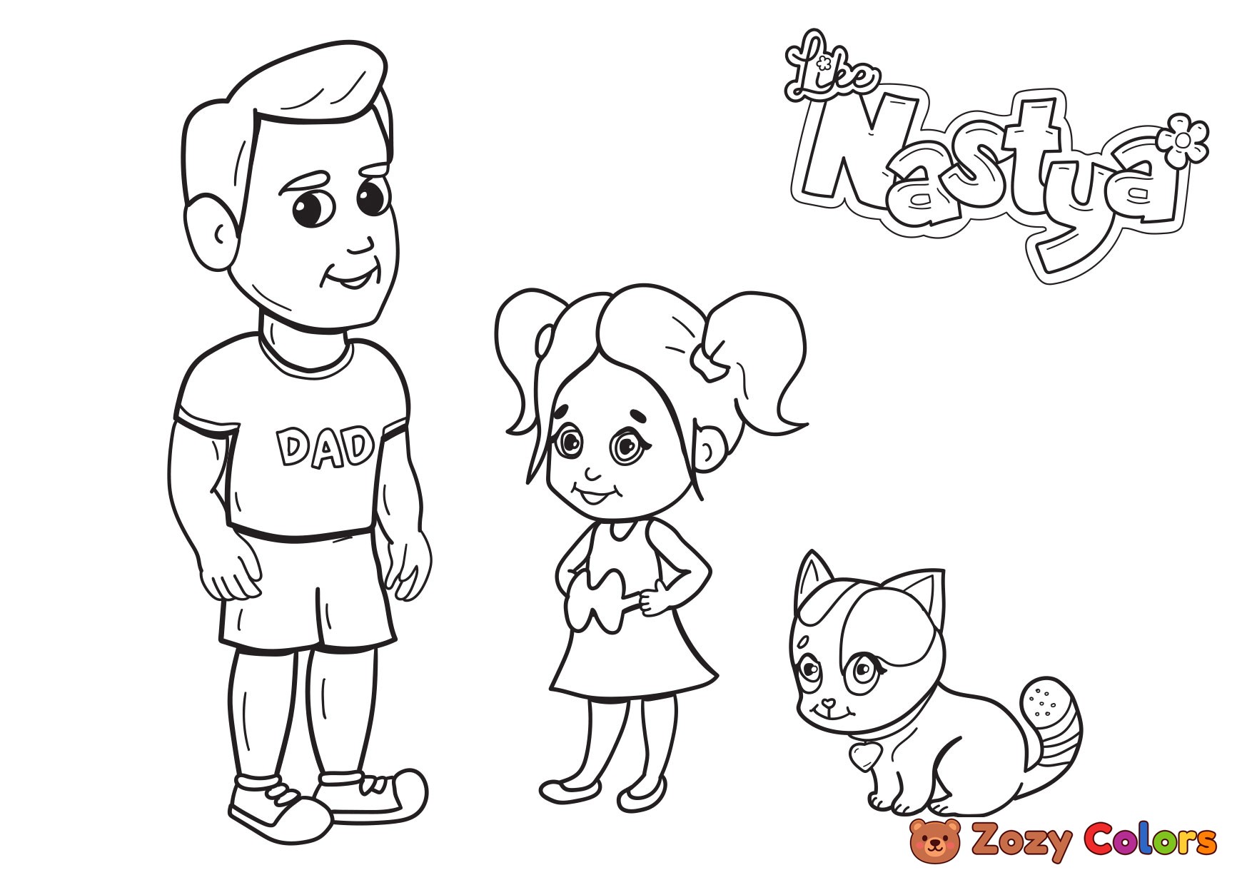 Nastya with Dad. Coloring page to print or download and color for your kids.