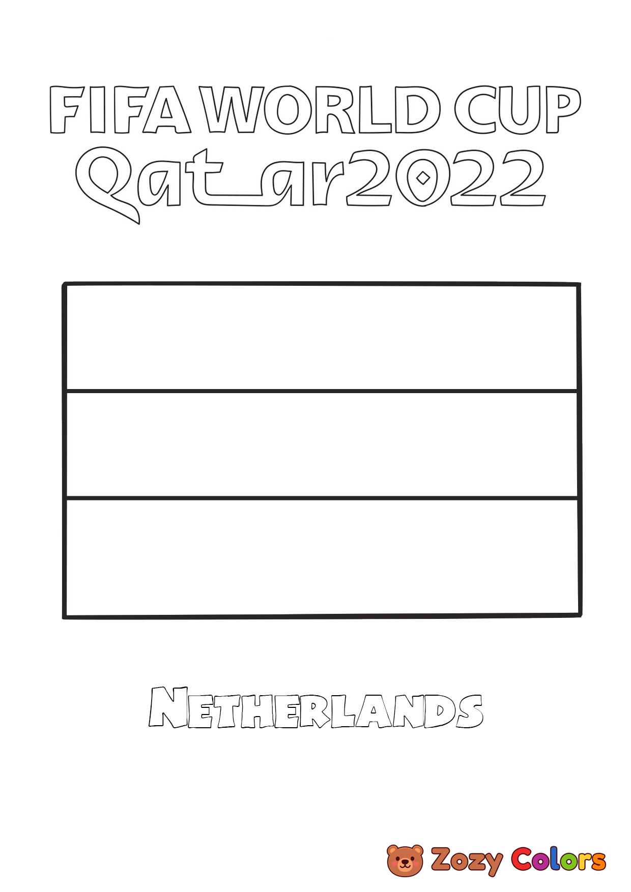 Netherlands World Cup flag. Coloring page to print or download and color for your kids.