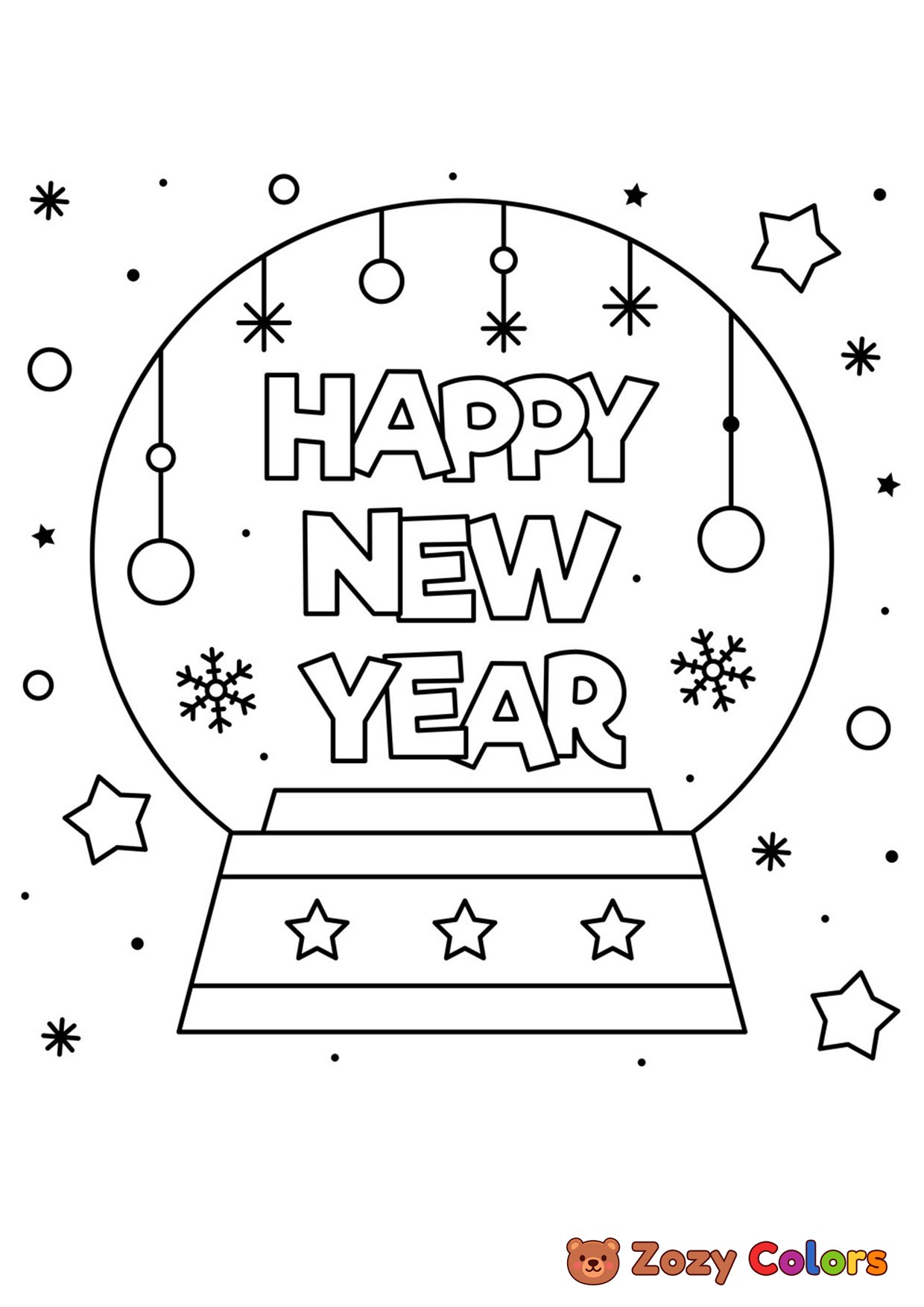 New years Snowglobe. Coloring page to print or download and color for your kids.