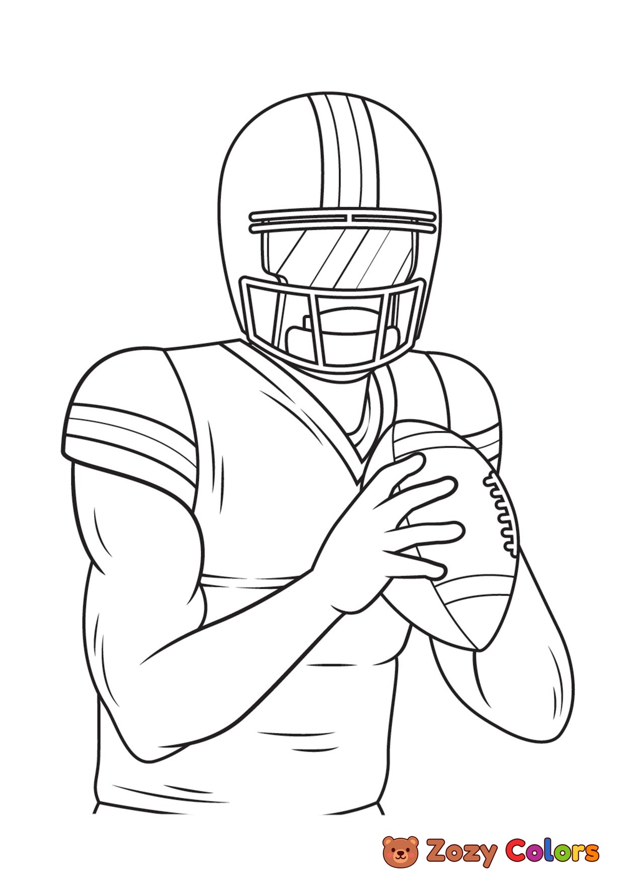 NFL player holding the football. Coloring page to print or download and color for your kids.