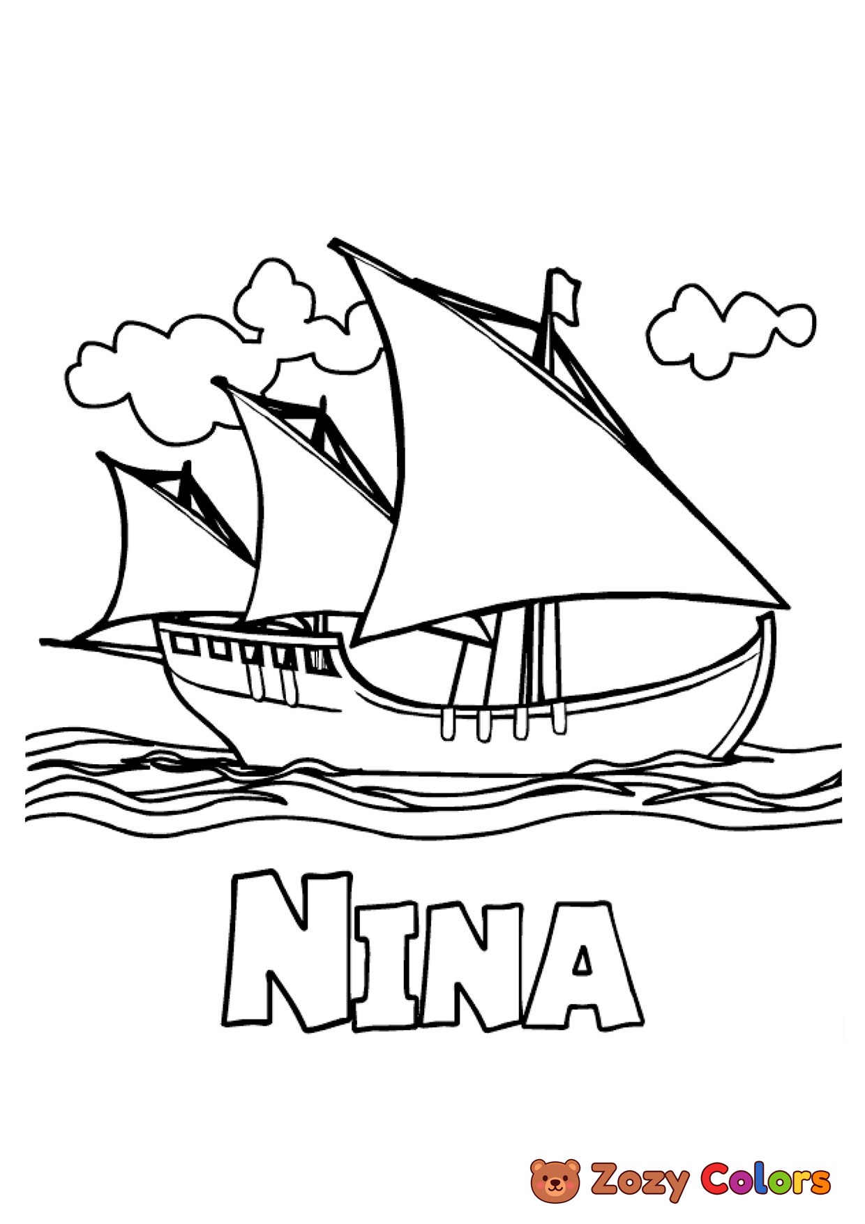 Nina - Columbus day ship. Coloring page to print or download and color for your kids.