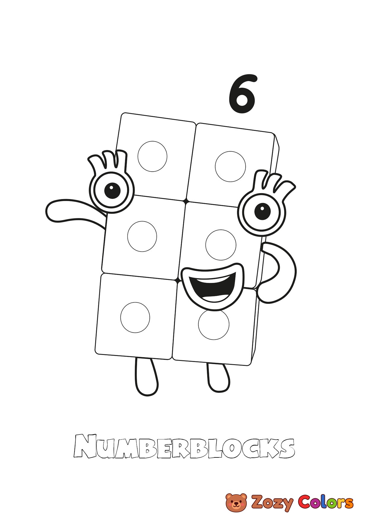 Number 6 Numberblocks. Coloring page to print or download and color for your kids.