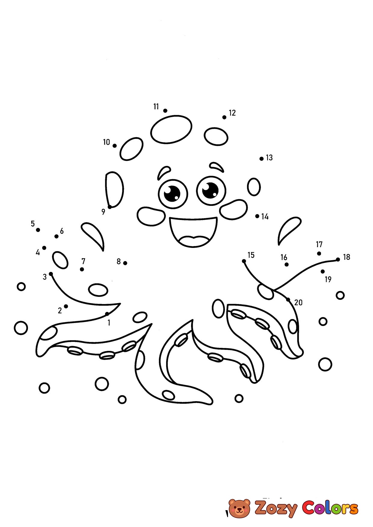 Octopus dot the dots - Free Dot the dots worksheets. Free and easy print for your kids.