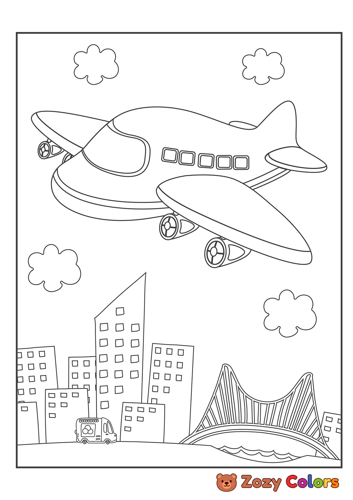 Pasanger airplane. Coloring page to print or download and color for your kids.