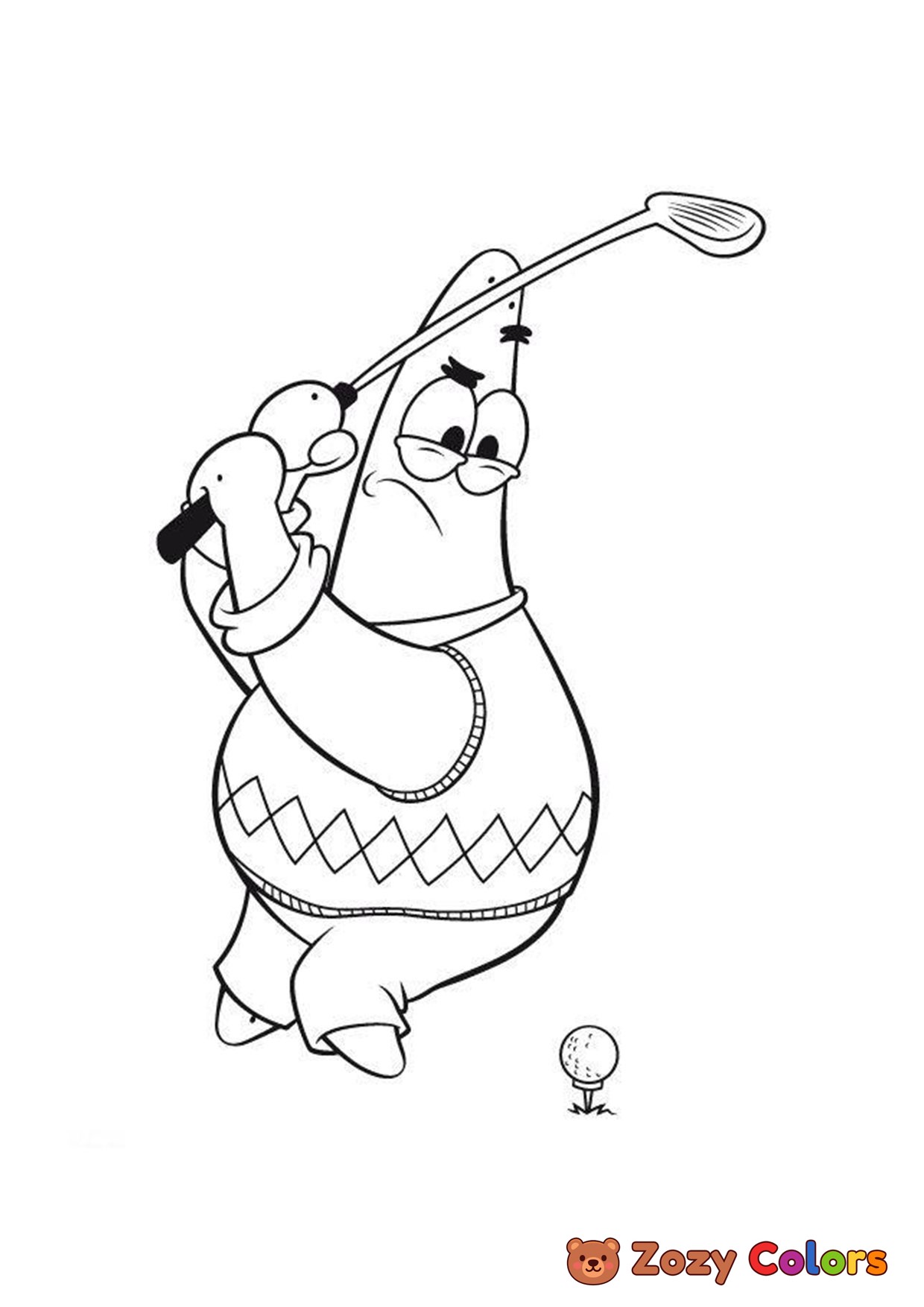 Patrick golfing. Coloring page to print or download and color for your kids.