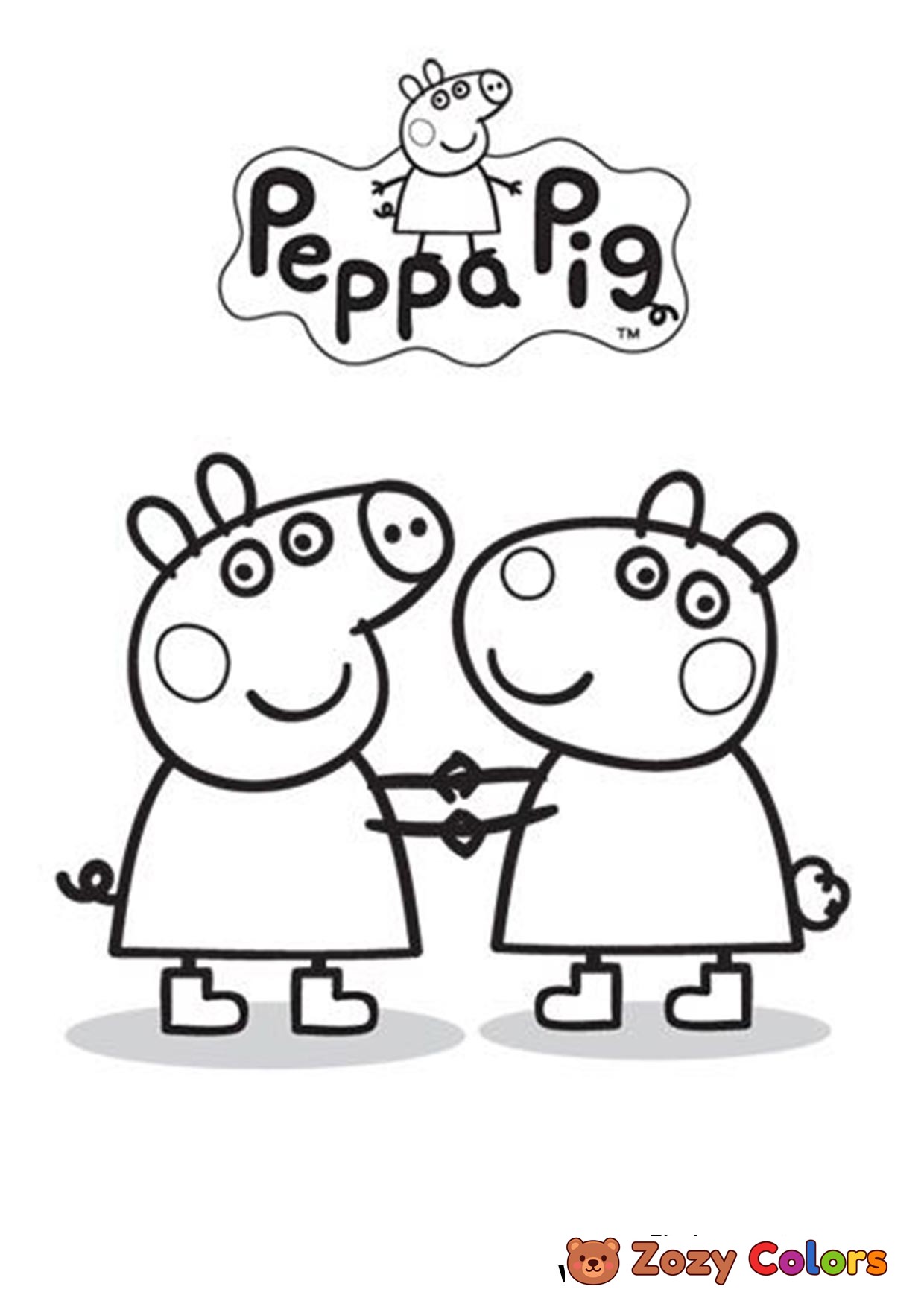 Peppa Pig and Suzzy Sheep having fun together. Coloring page to print or download and color.