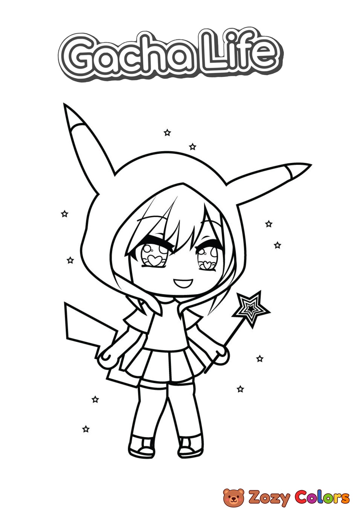 Pikachu girl from Gacha Life. Coloring page to print or download and color for your kids.