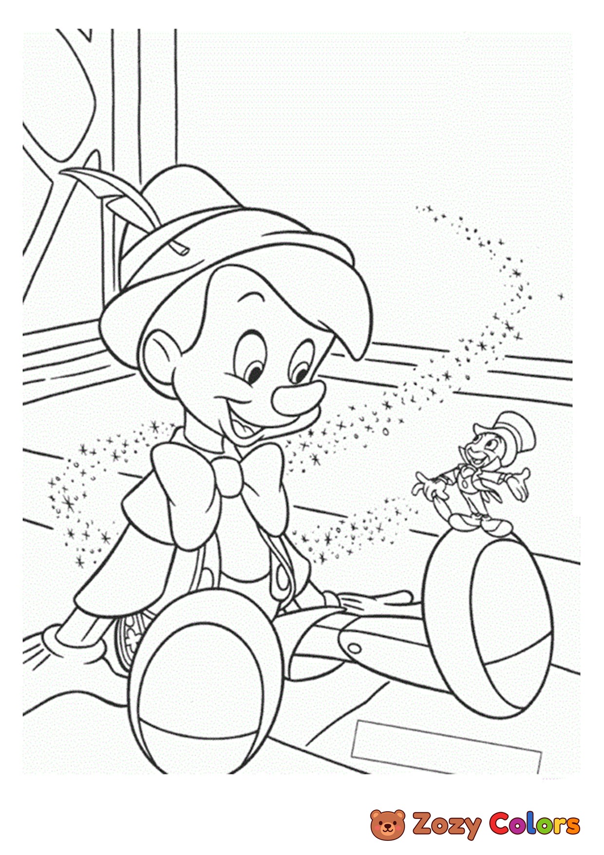Pinocchio with magic. Coloring page to print or download and color for your kids.