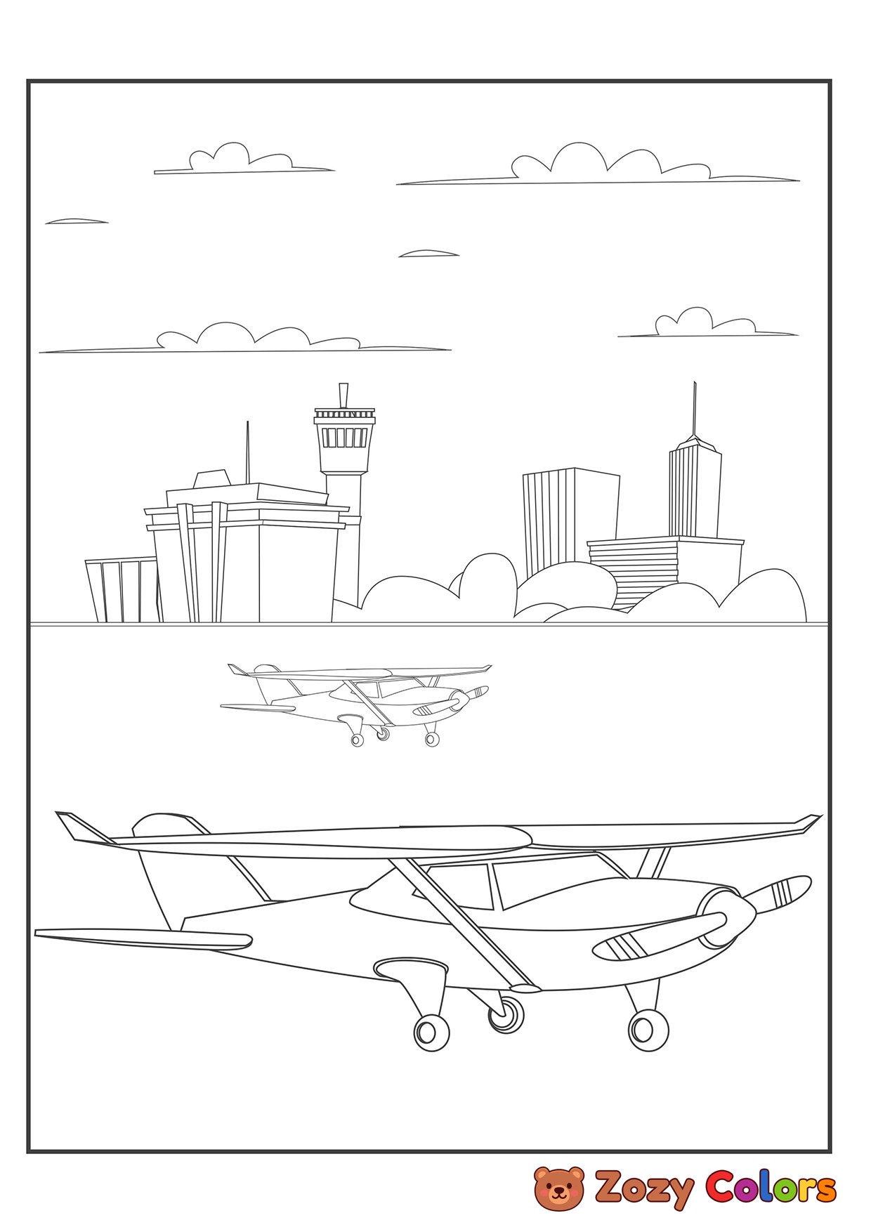 Planes getting ready for takeoff. Coloring page to print or download and color for your kids.