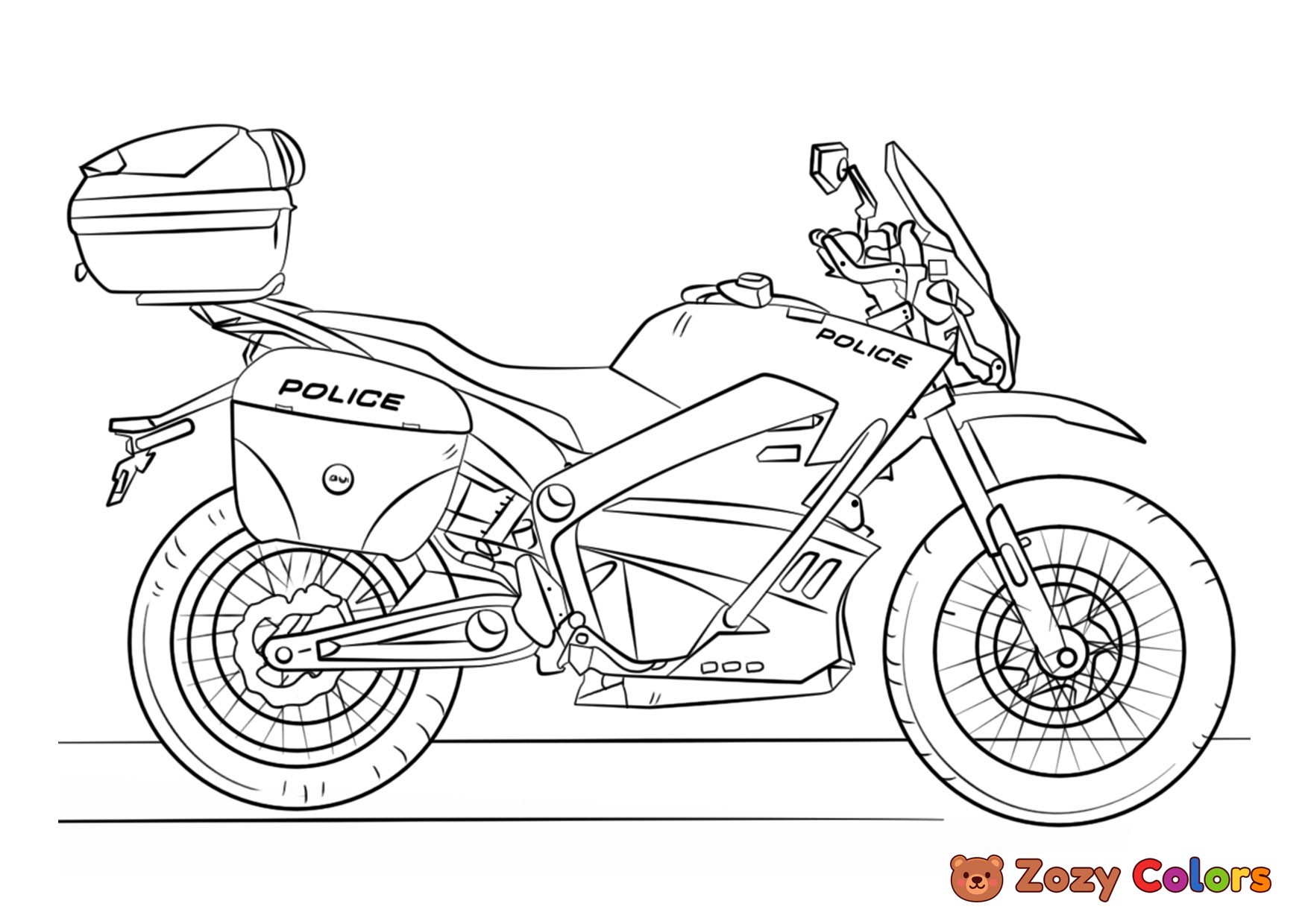 Police motorcycle. Coloring page to print or download and color for your kids.