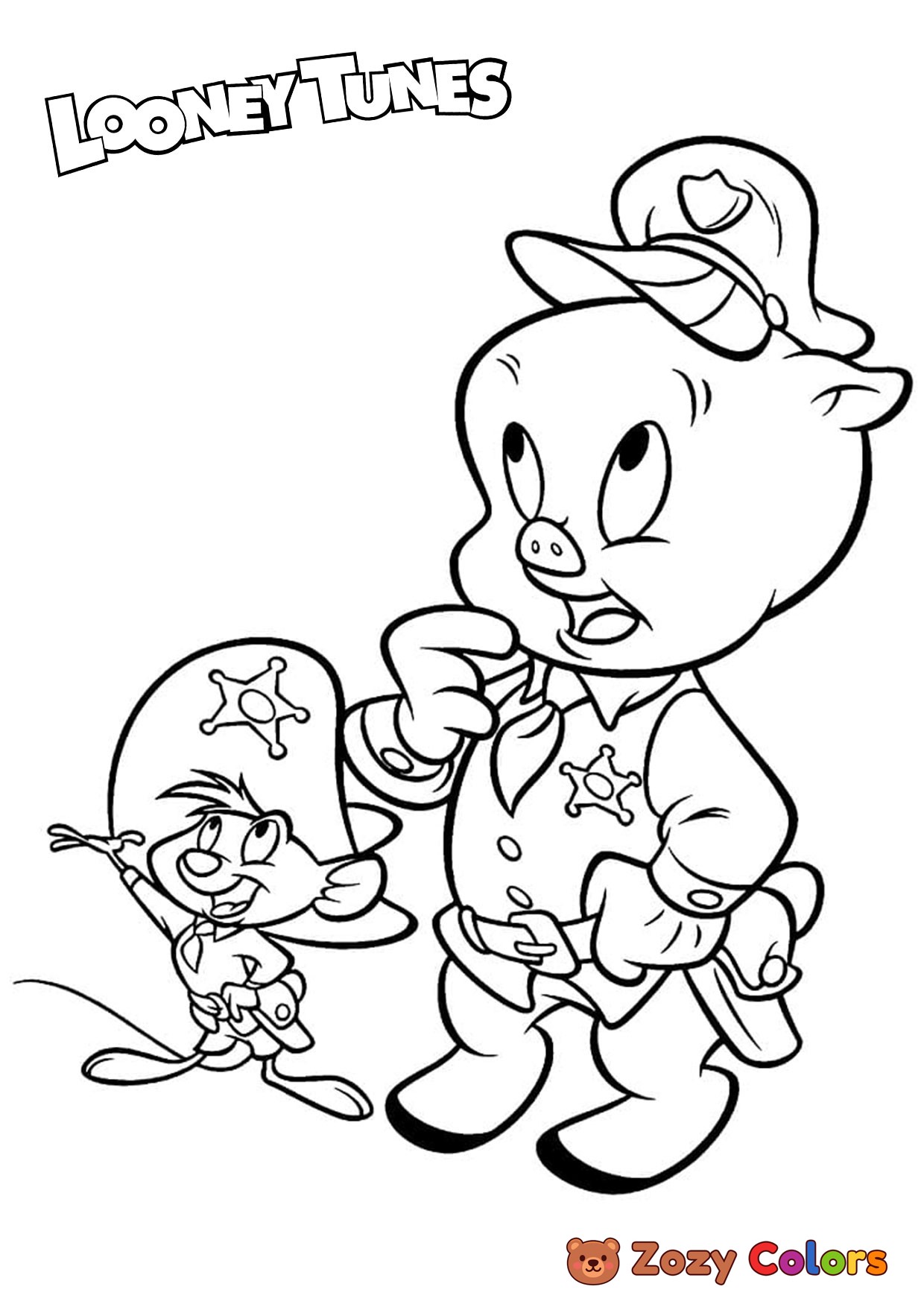 Porky Pig and Speddy. Coloring page to print or download and color for your kids.