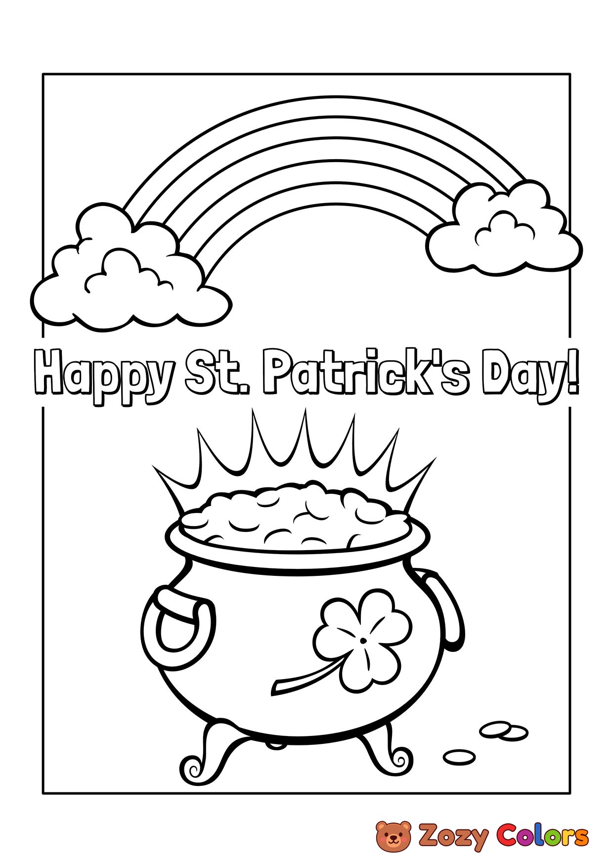 Pot of gold. Coloring page to print or download and color for your kids.
