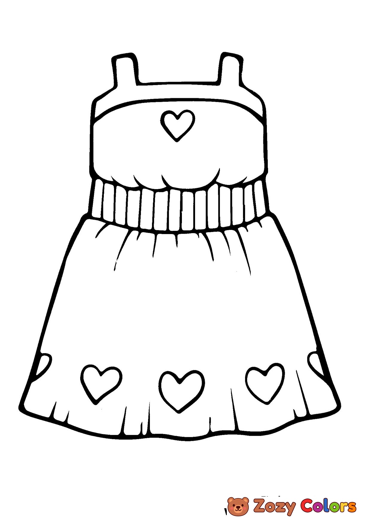 Princess dress with harts. Coloring page to print or download and color for your kids.