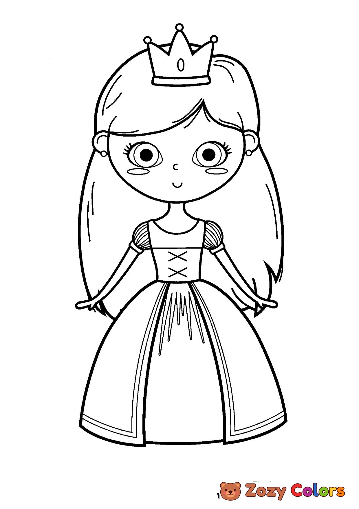 Princess with a crown being cute. Coloring page to print or download and color for your kids.