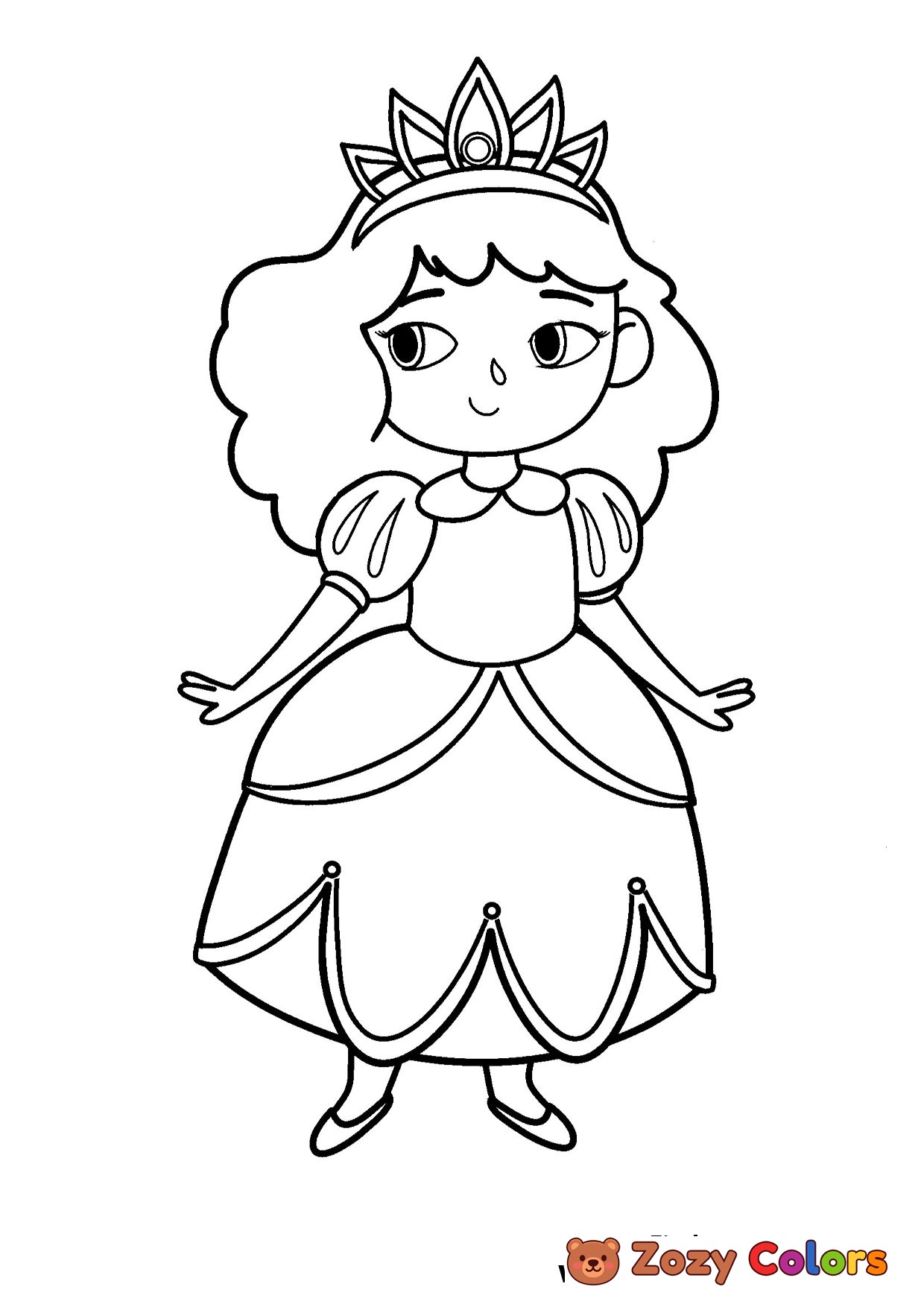 Princess with a tiara looking cute. Coloring page to print or download and color for your kids.