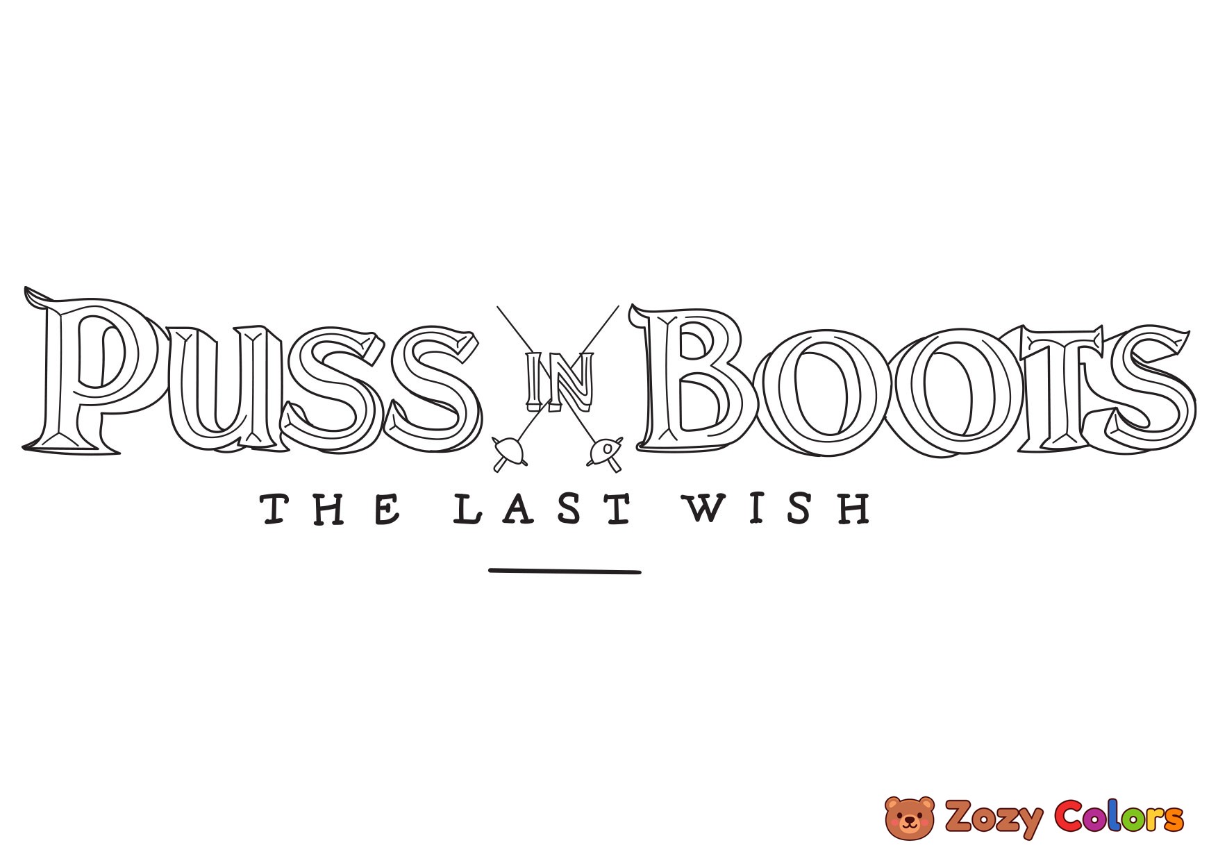 Puss in boots logo. Coloring page to print or download and color for your kids.