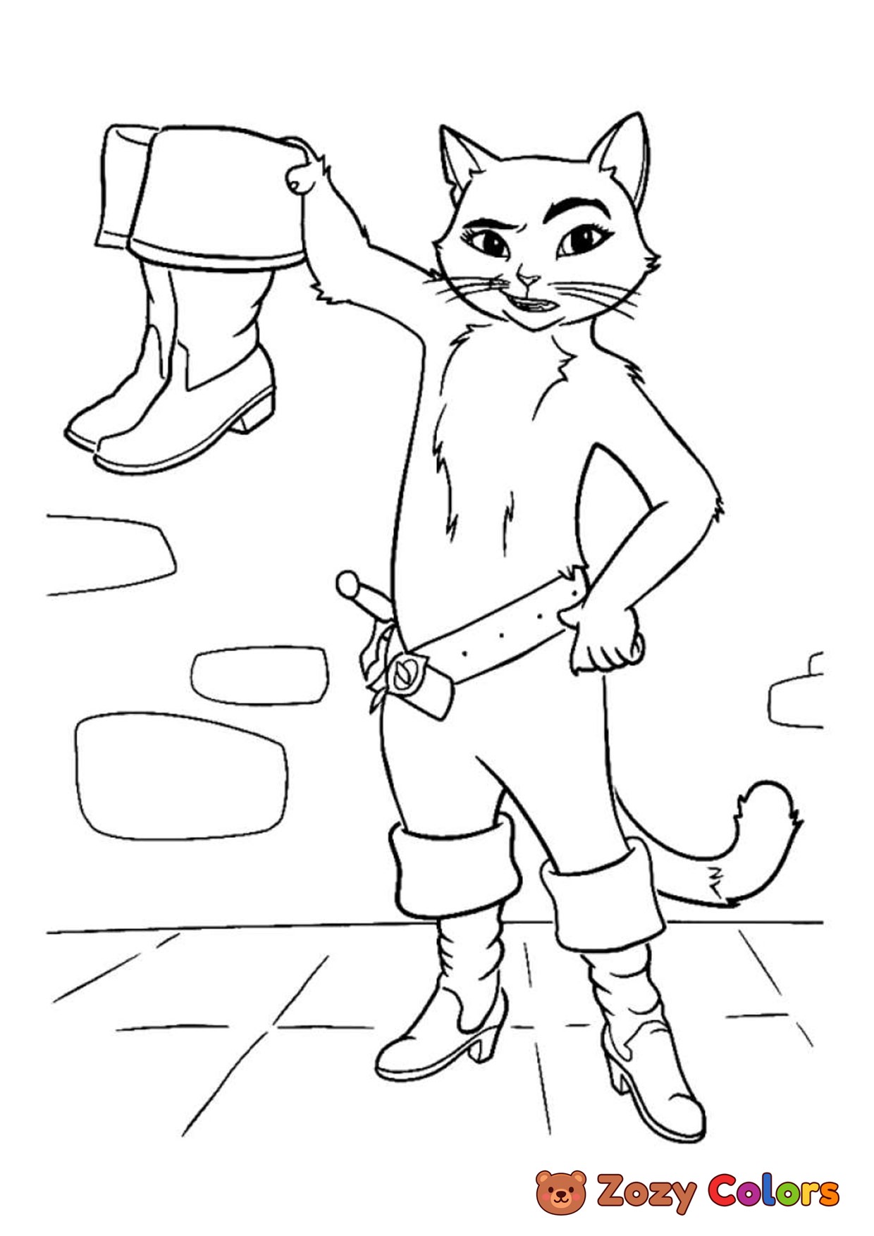 Puss with his boots. Coloring page to print or download and color for your kids.