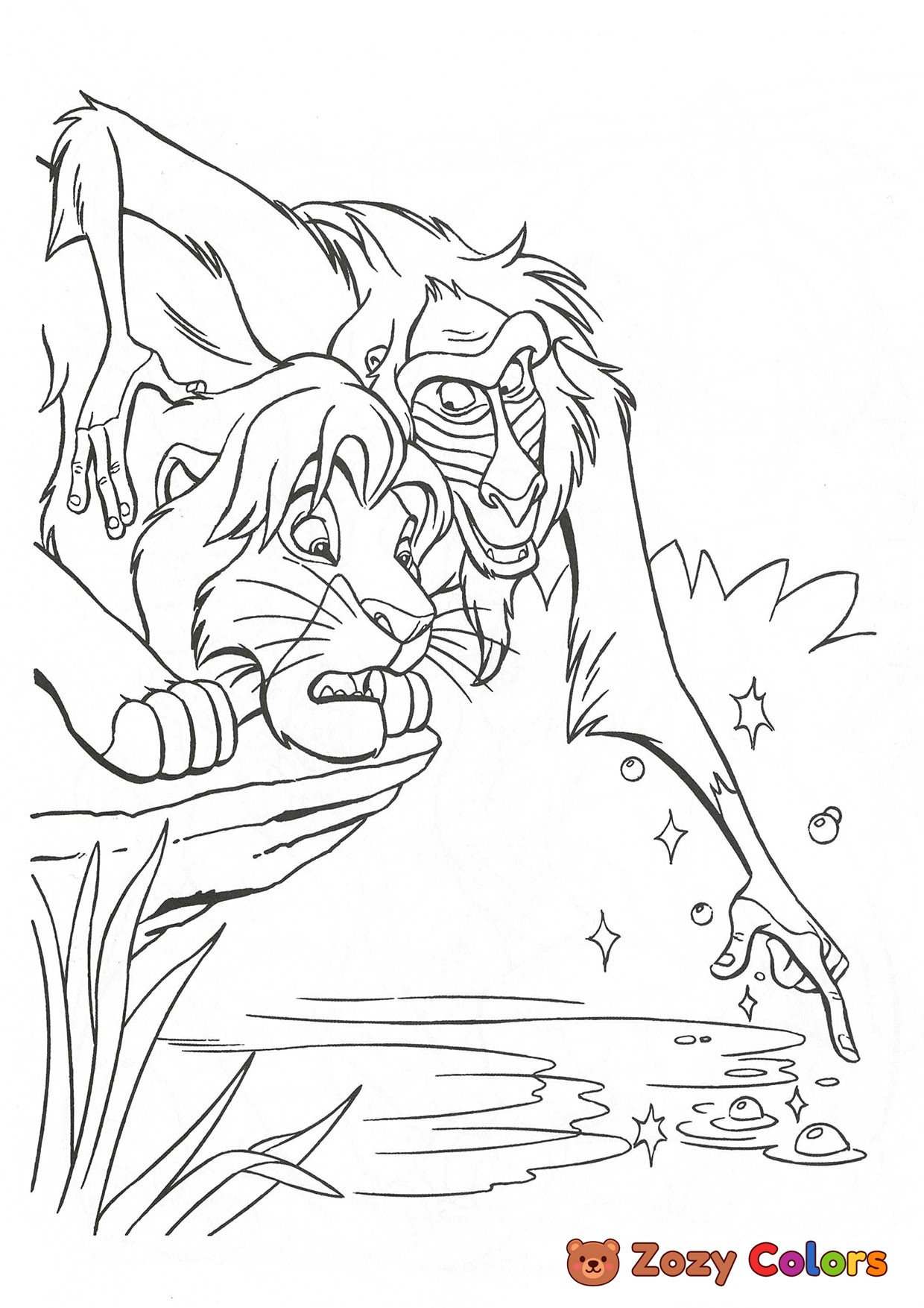 Rafiki and Simba from Lion King. Coloring page to print or download and color for your kids.