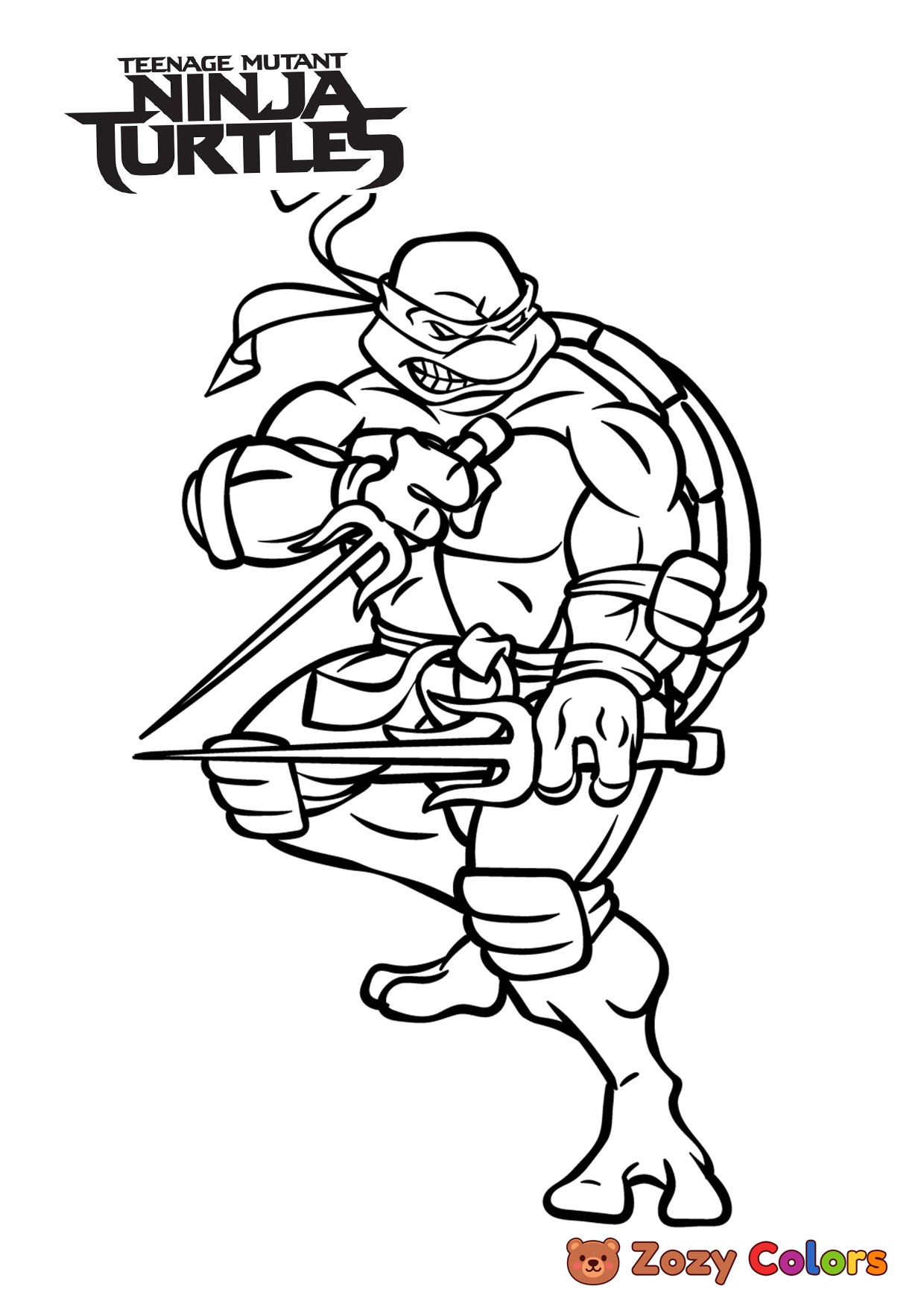 Raphael fighting. Coloring page to print or download and color for your kids.
