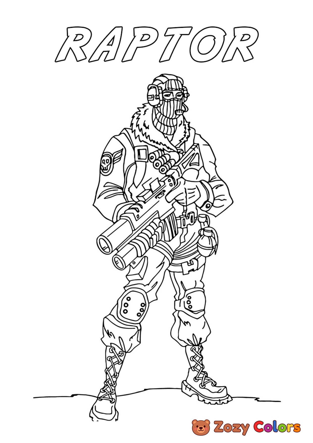 Raptor - Fortnite. Coloring page to print or download and color for your kids.