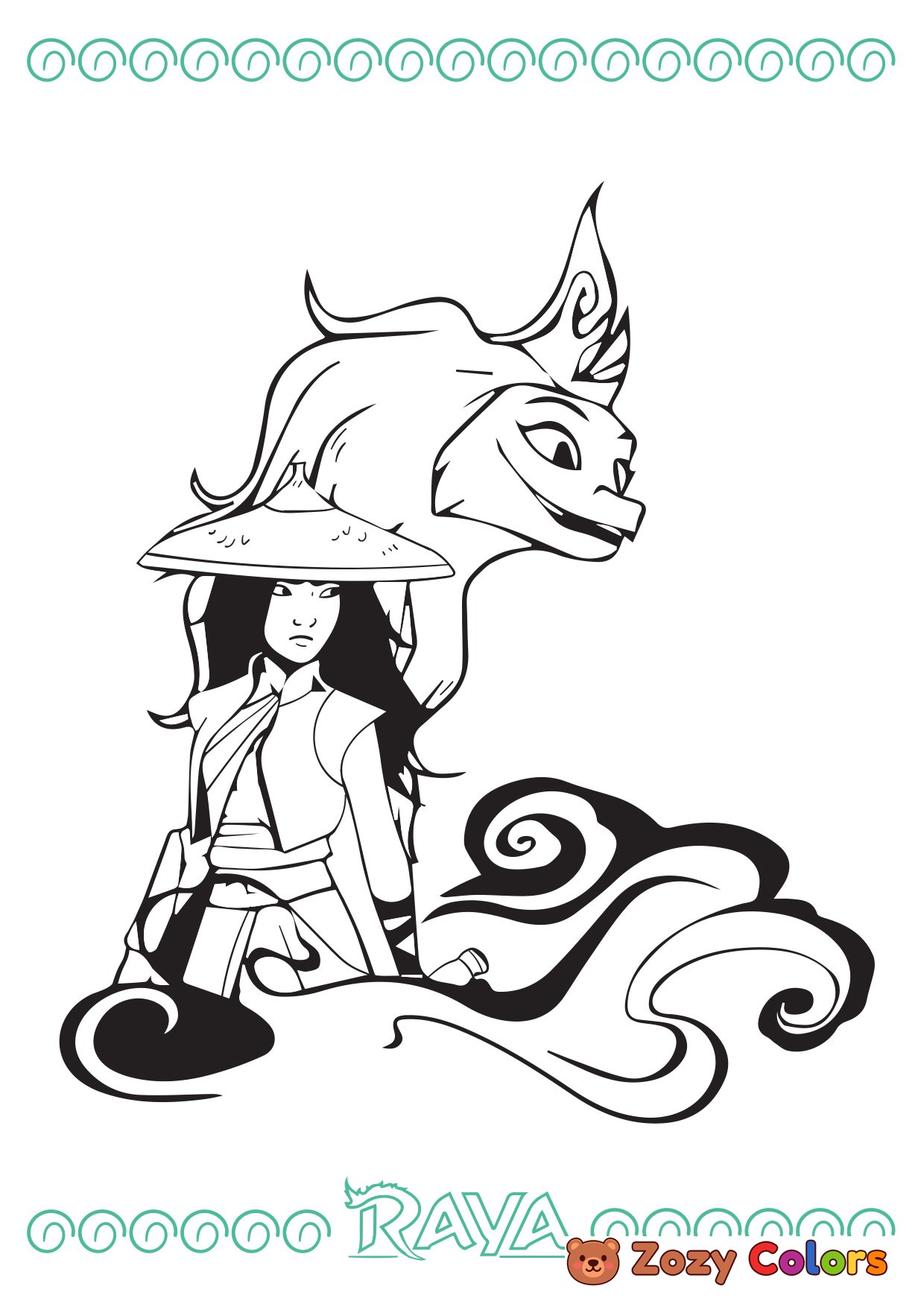 Raya and Sisu. Coloring page to print or download and color for your kids.