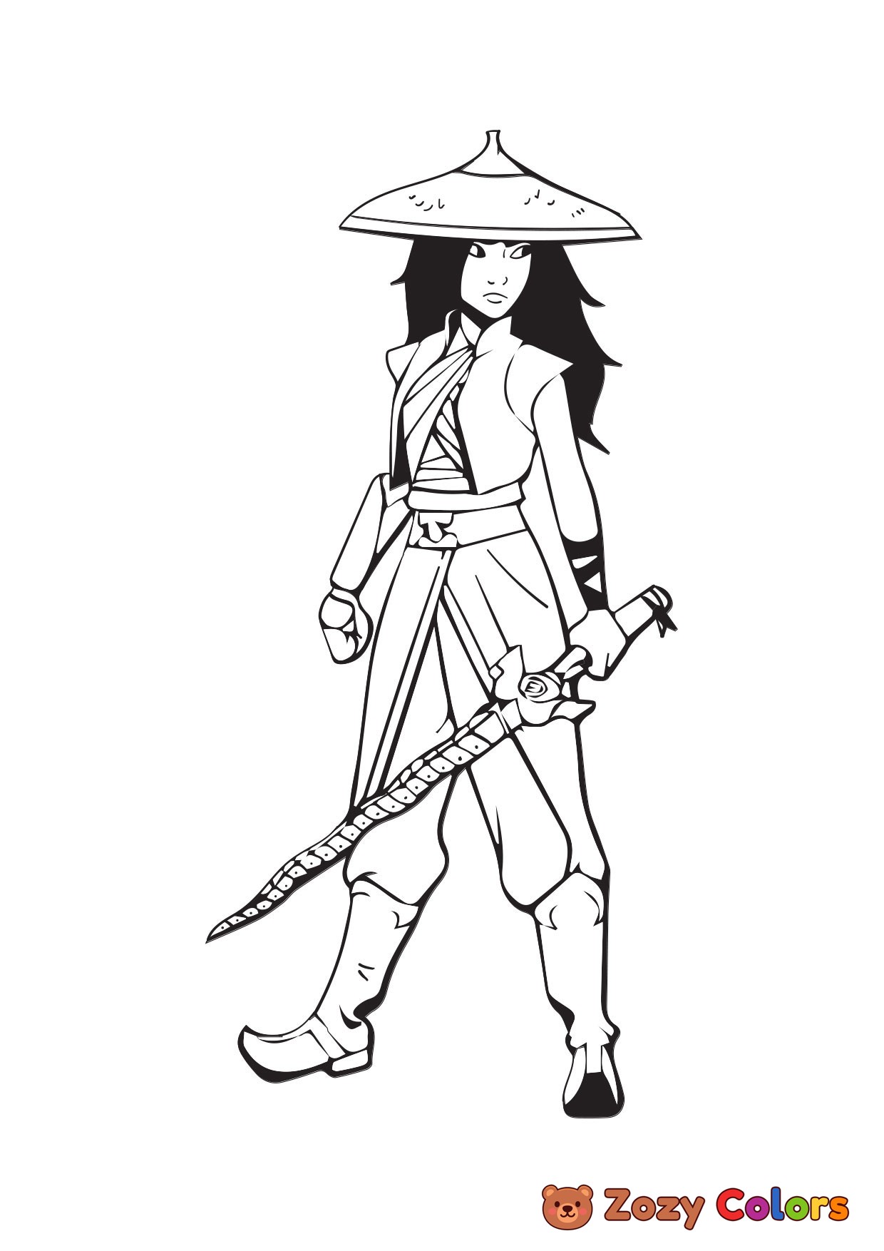 Raya Disney princess. Coloring page to print or download and color for your kids.