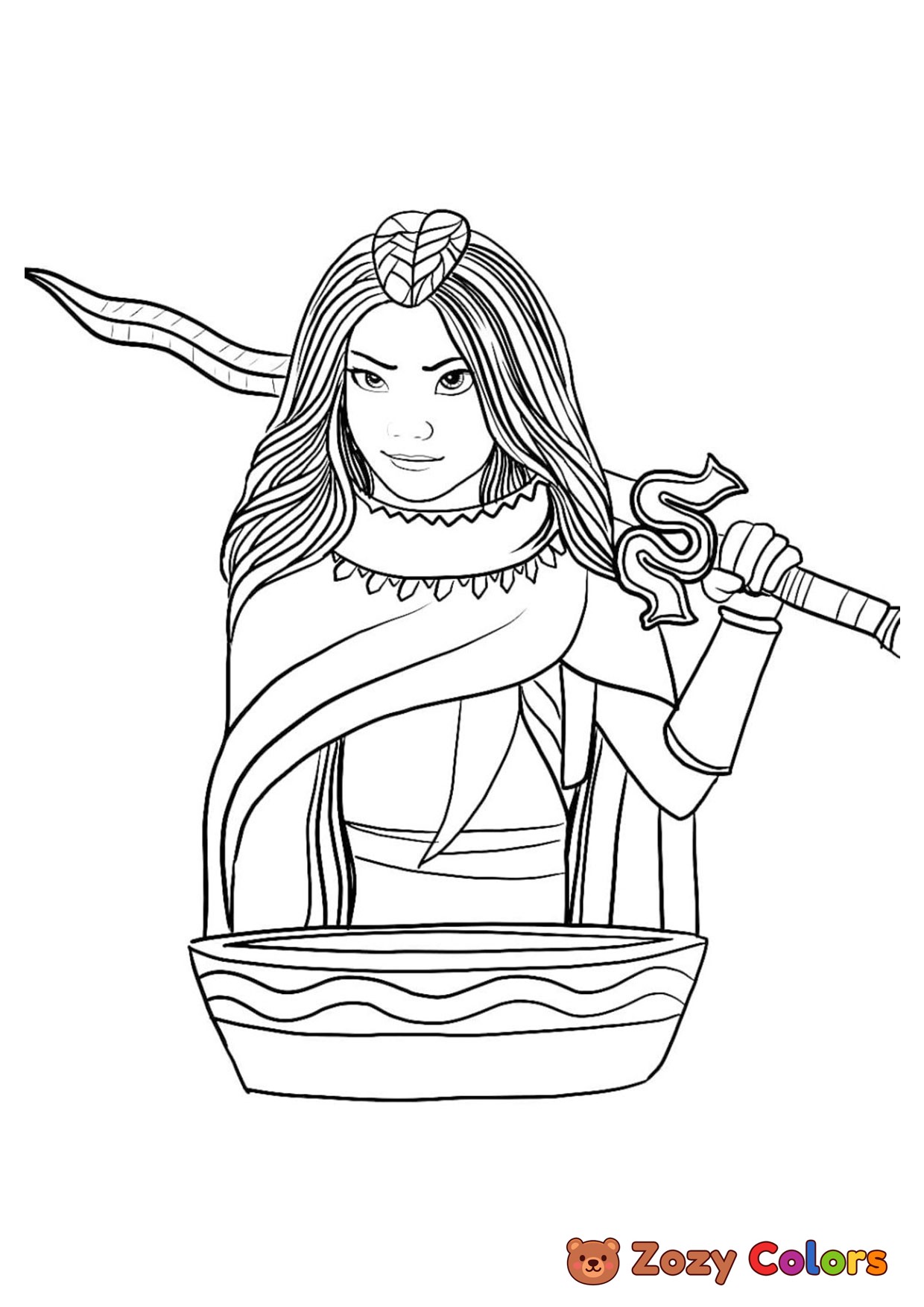 Raya portrait Disney princess. Coloring page to print or download and color for your kids.