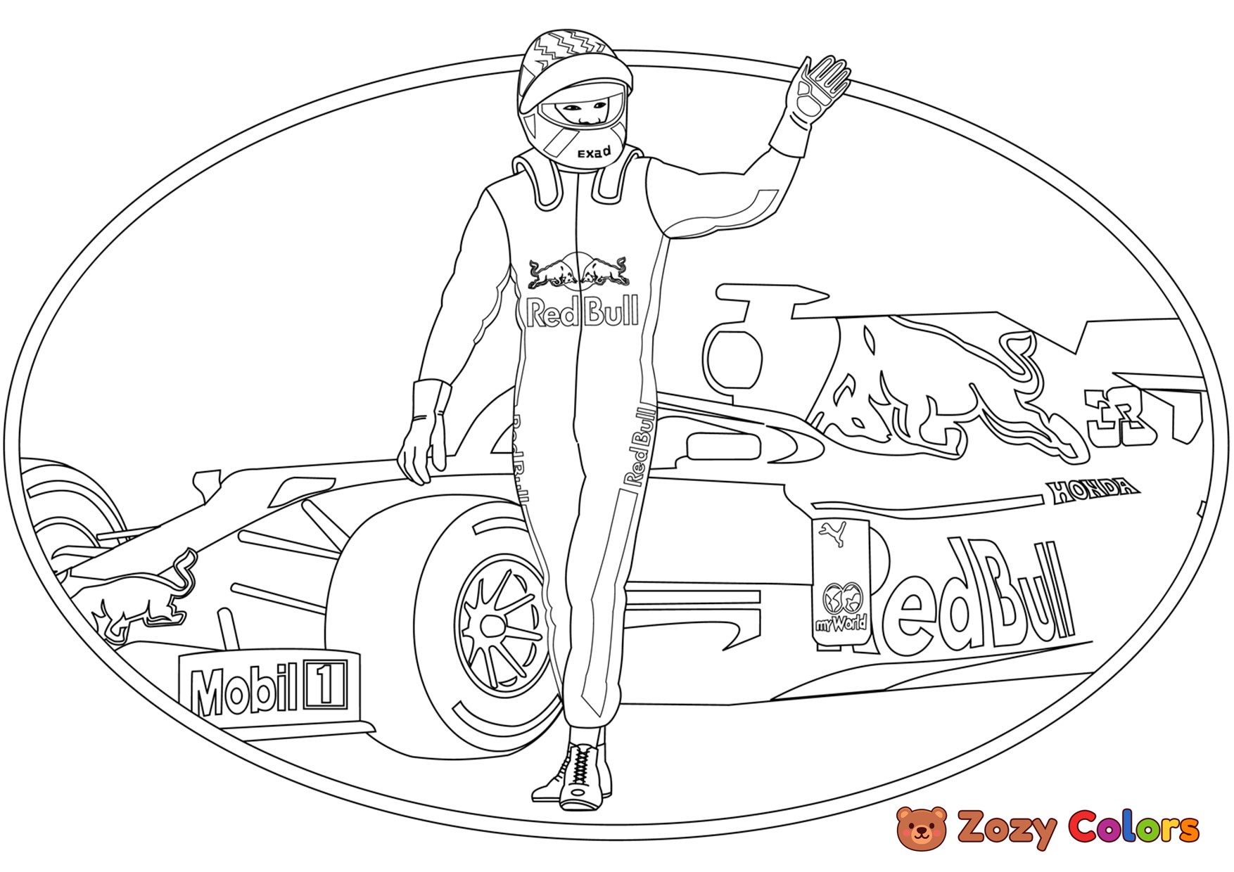 Red Bull Formula 1 car. Coloring page to print or download and color for your kids.