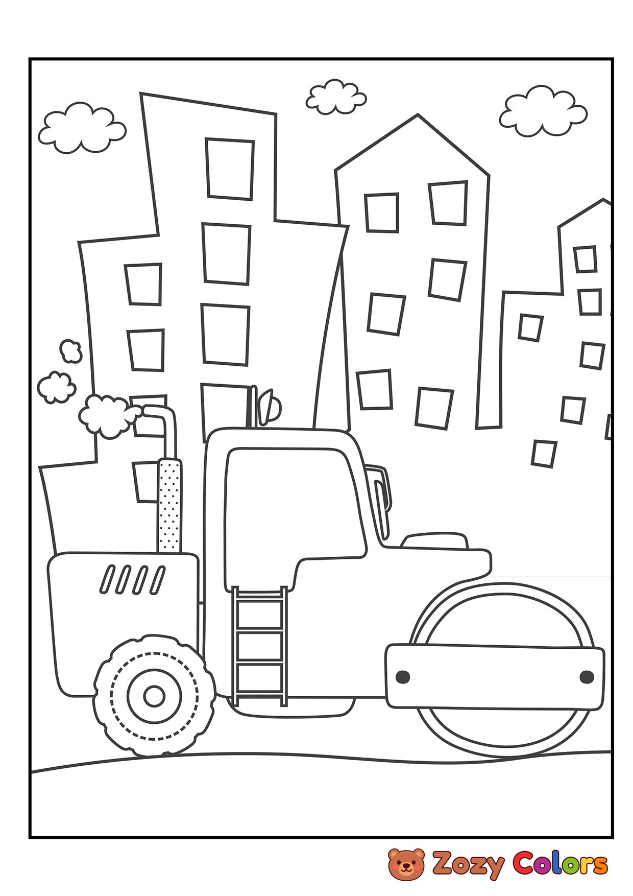 Roller on construction site. Coloring page to print or download and color for your kids.