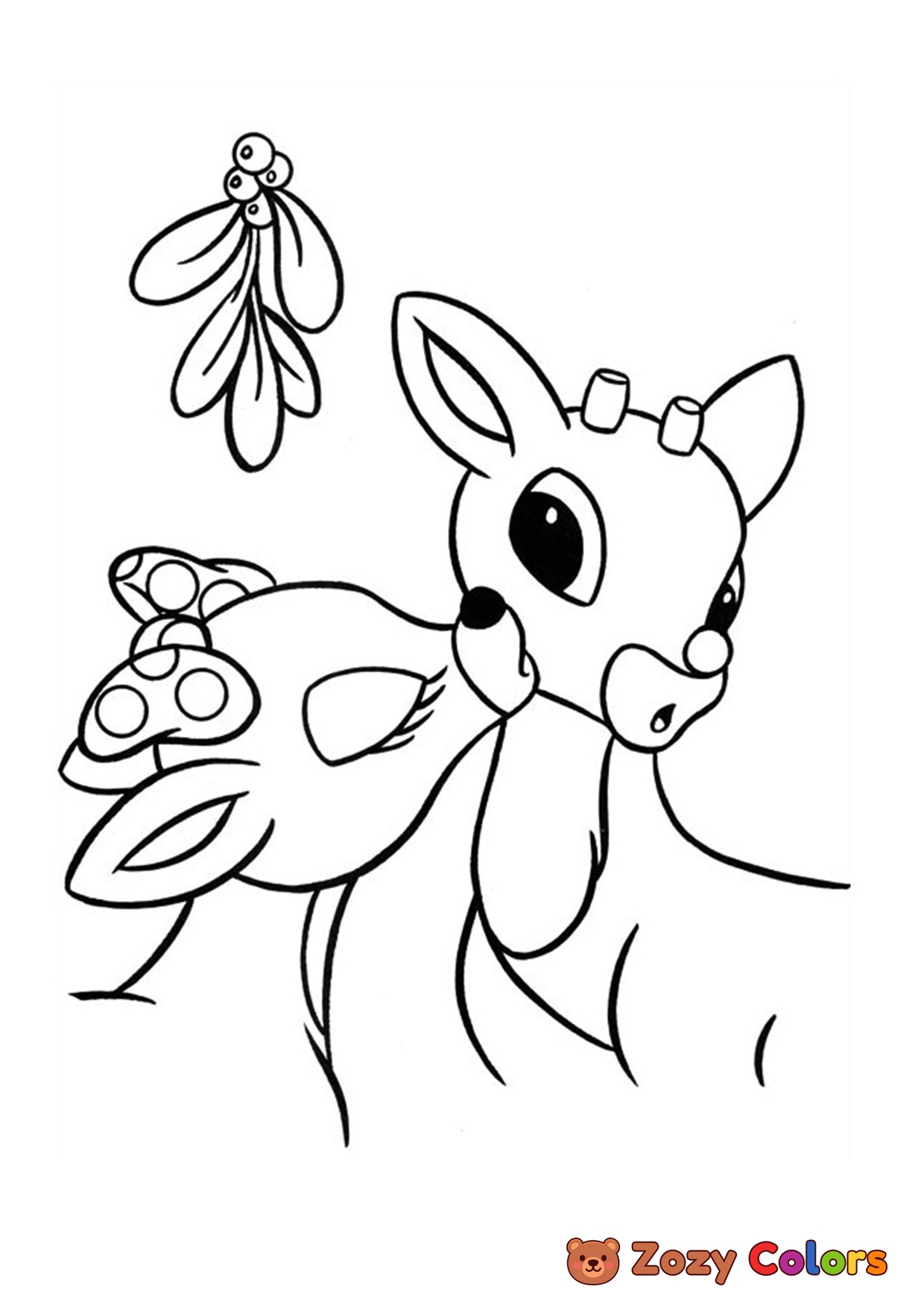 Rudolph the raindeer kissing. Coloring page to print or download and color for your kids.