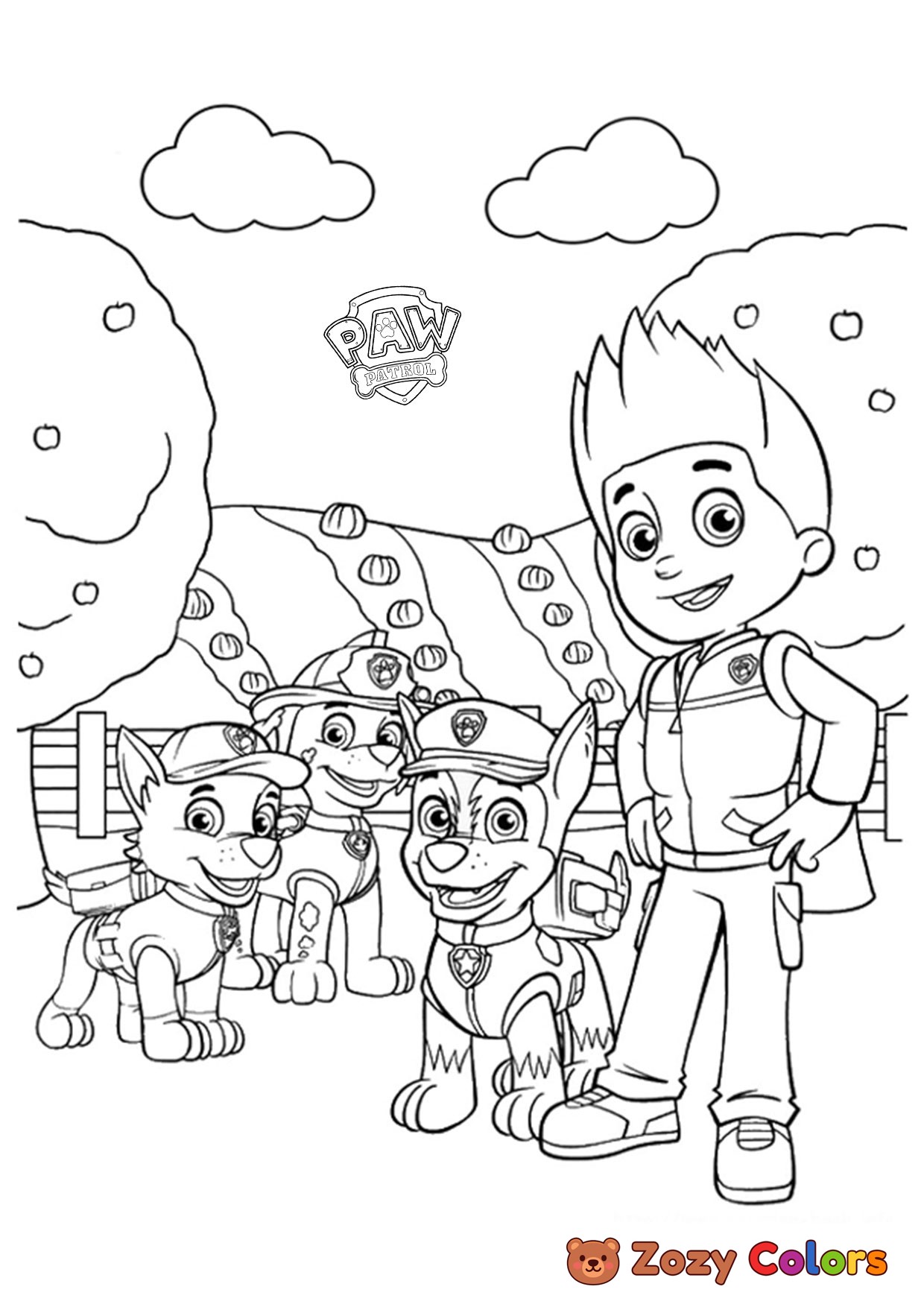 Ryder and Paw Patrol. Coloring page to print or download and color for your kids.