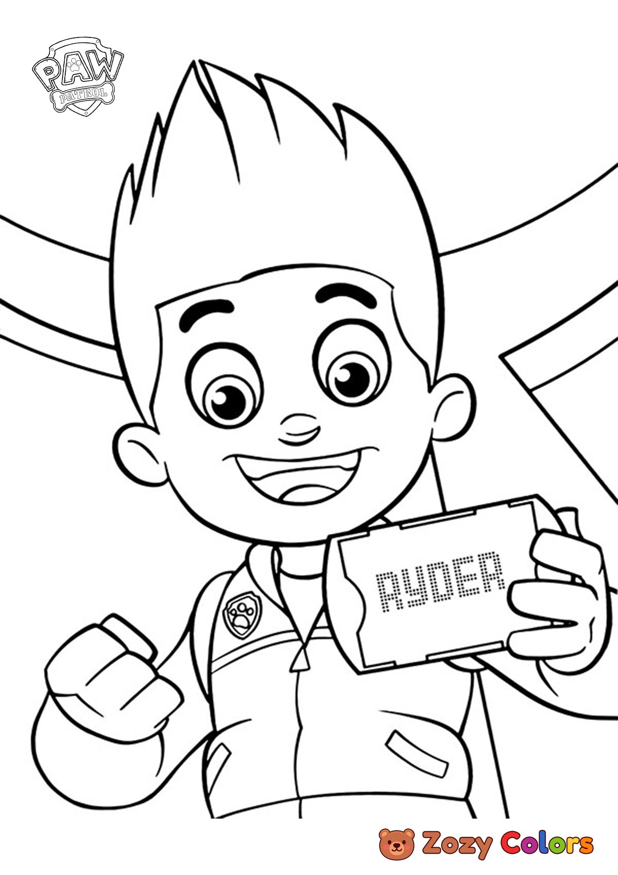 Ryder with tablet. Coloring page to print or download and color for your kids.