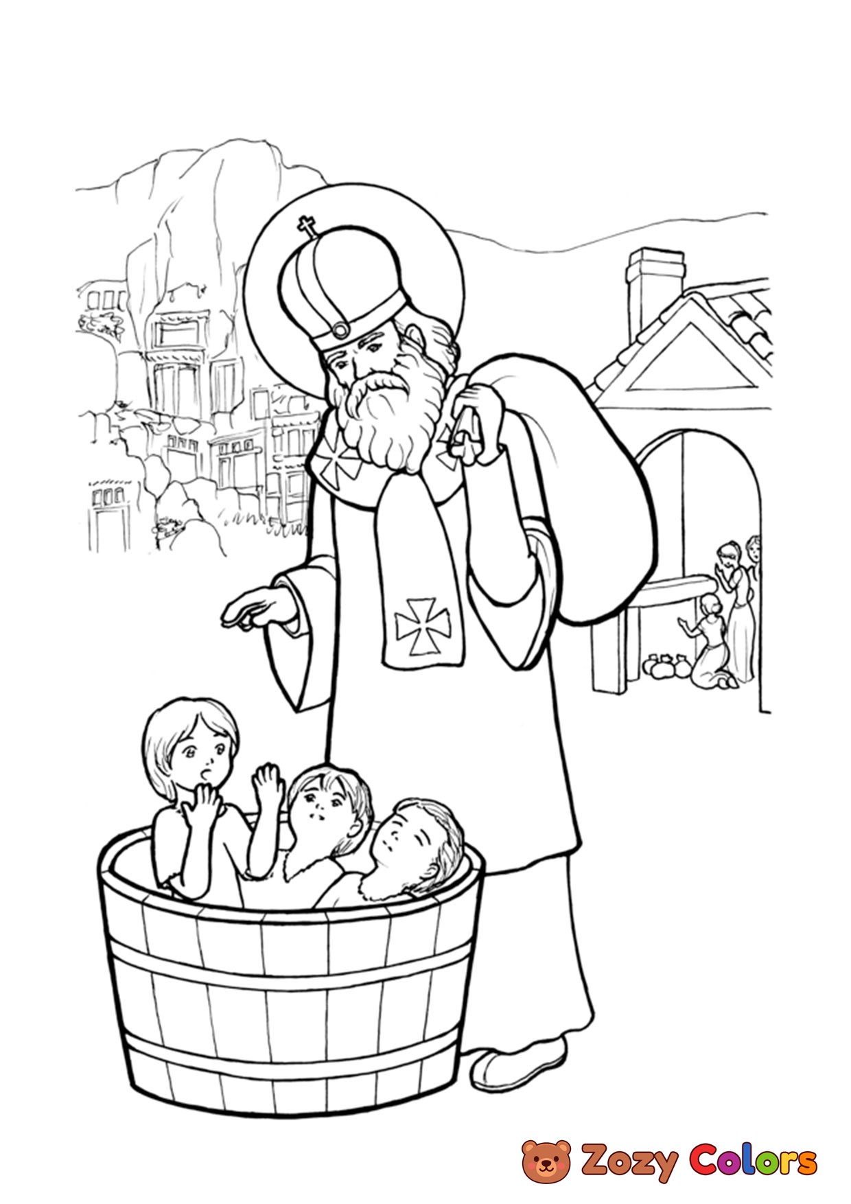 Saint Nicholas Day. Coloring page to print or download and color for your kids.