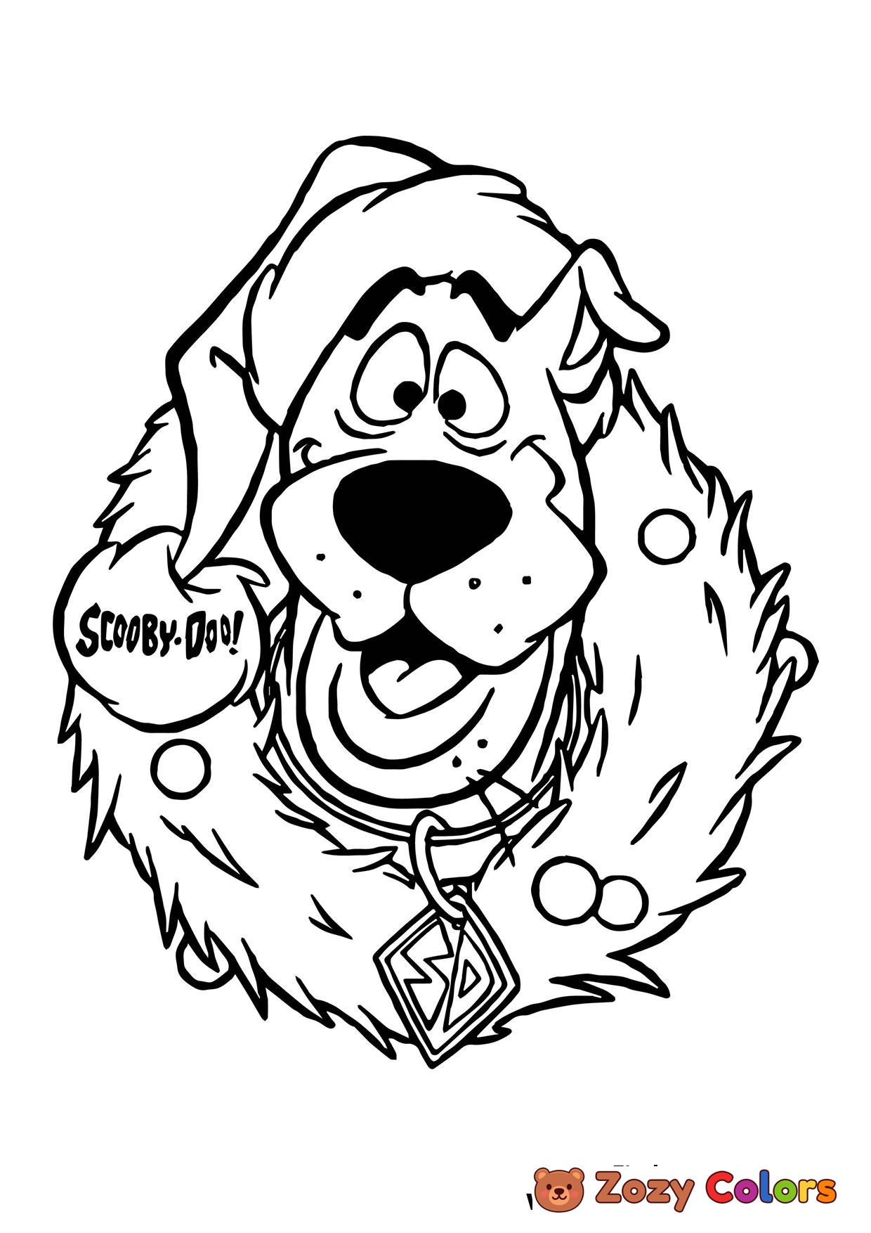 Scooby-Doo christmas with his santa hat. Coloring page to print or download and color.