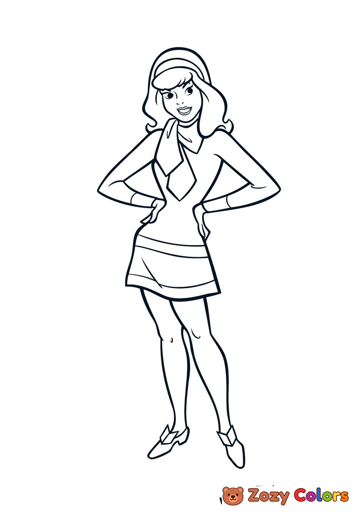 Scooby-Doo Daphne posing for a picture. Coloring page to print or download and color.