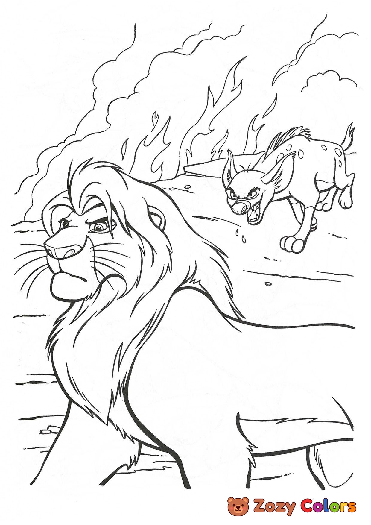 Simba returning to save his land. Coloring page to print or download and color for your kids.