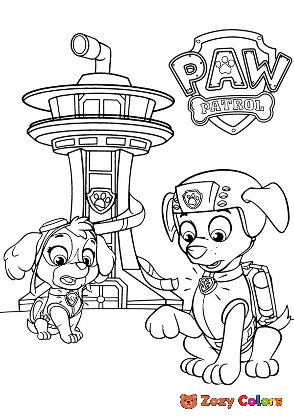 Skye and Zuma. Coloring page to print or download and color for your kids.