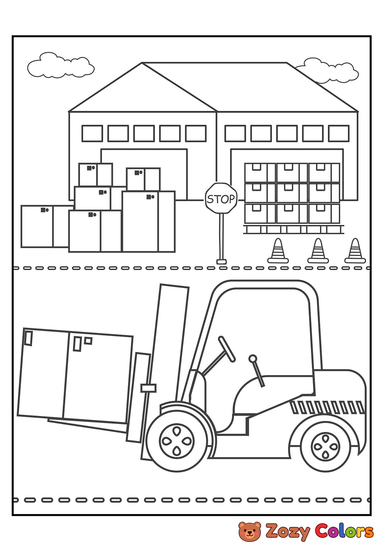 Small forklift. Coloring page to print or download and color for your kids.