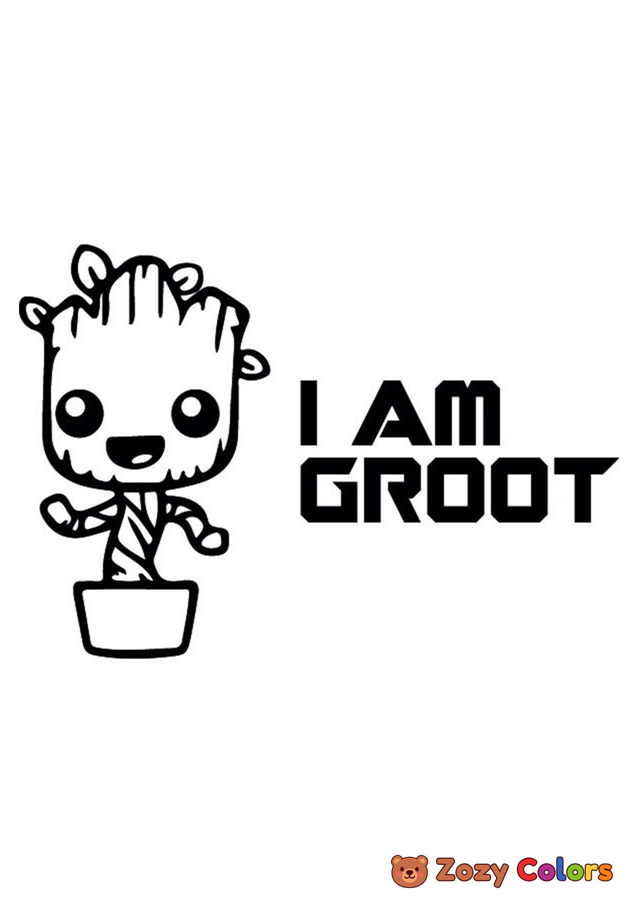 Small I Am Groot. Coloring page to print or download and color for your kids.