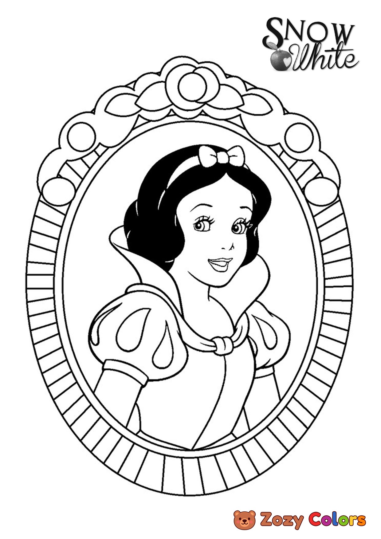 Snow White portrait. Coloring page to print or download and color for your kids.