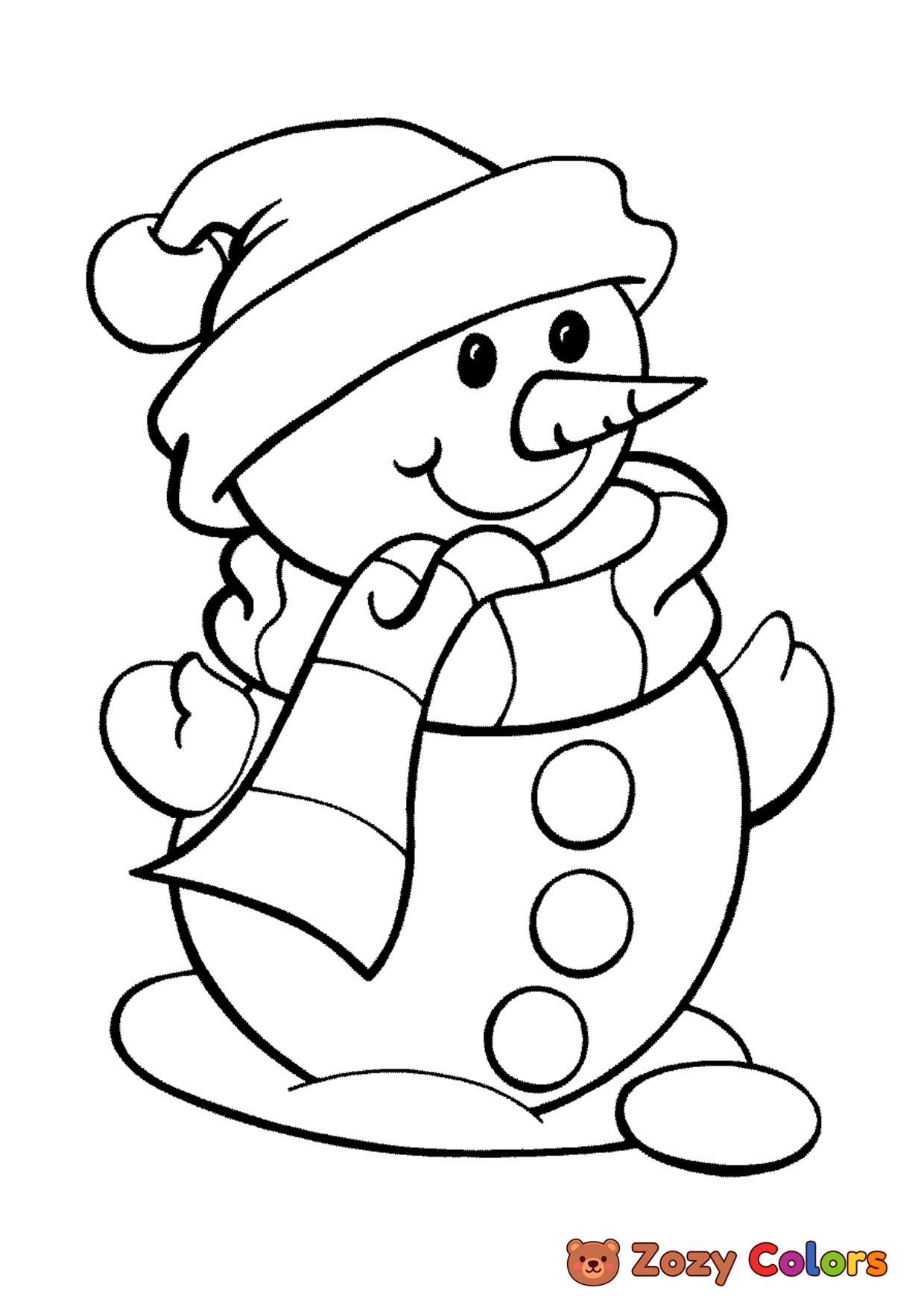 Snowman with a scarf. Coloring page to print or download and color for your kids.