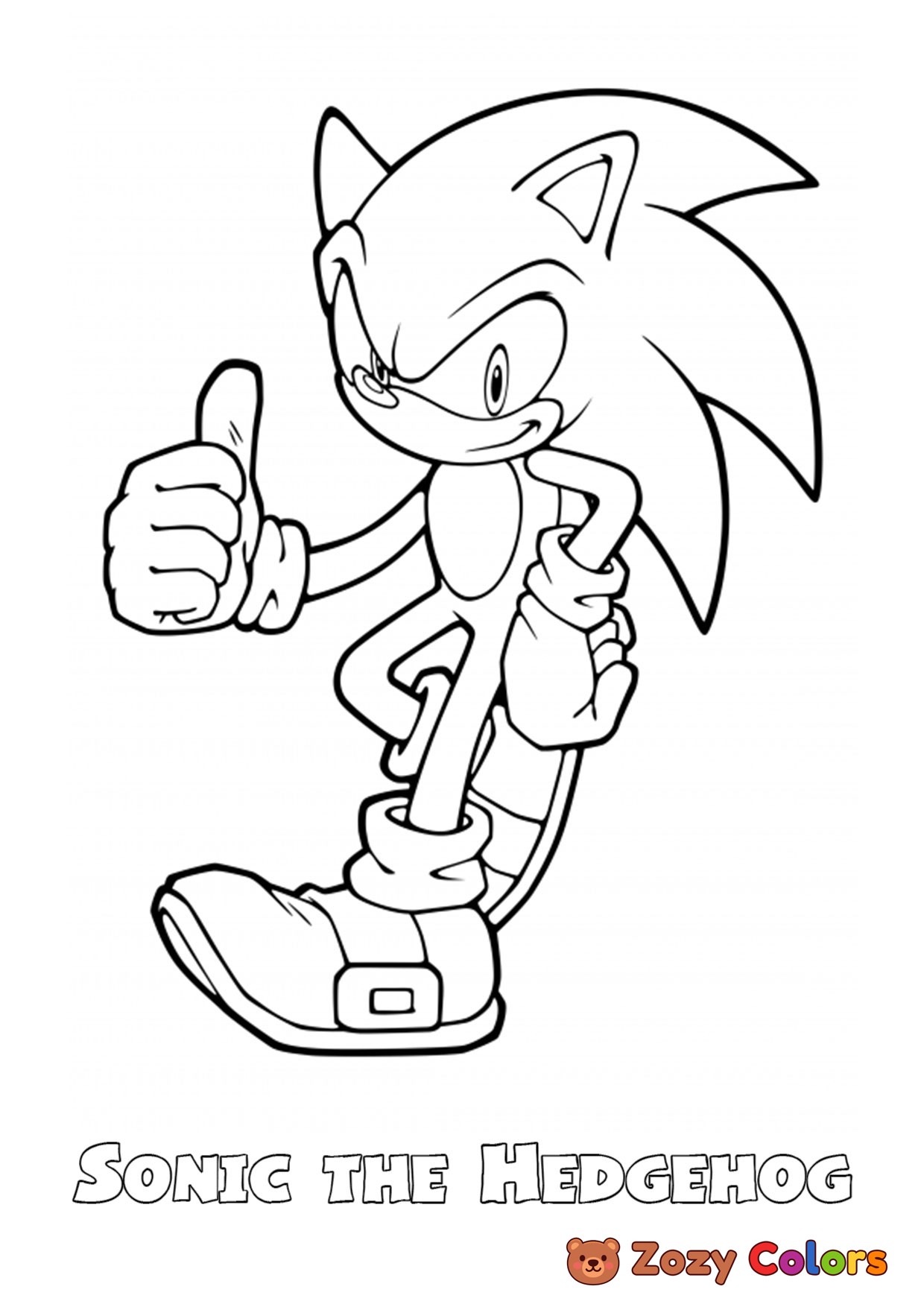 Sonic giving thumbs up. Coloring page to print or download and color for your kids.