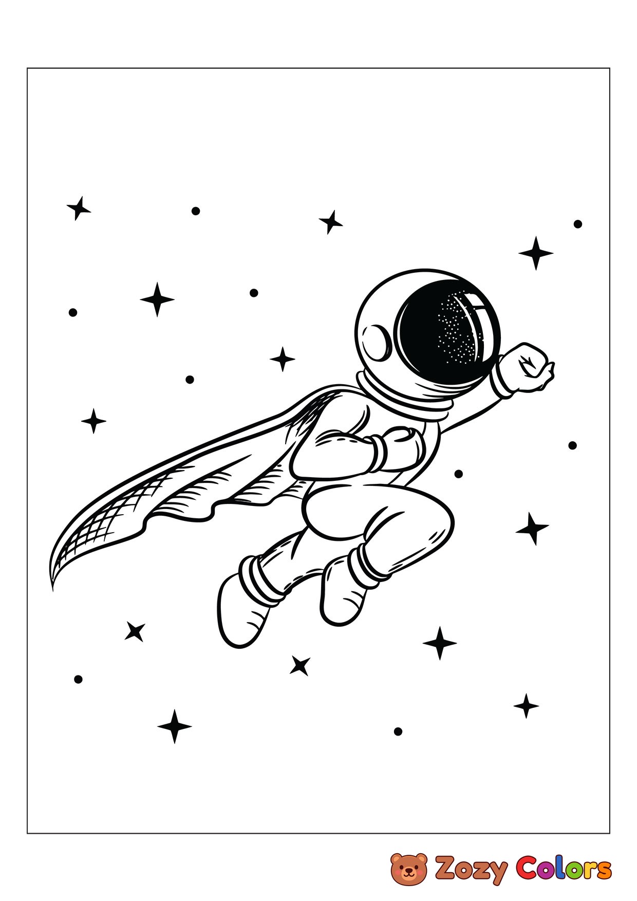 Space man astronaut. Coloring page to print or download and color for your kids.