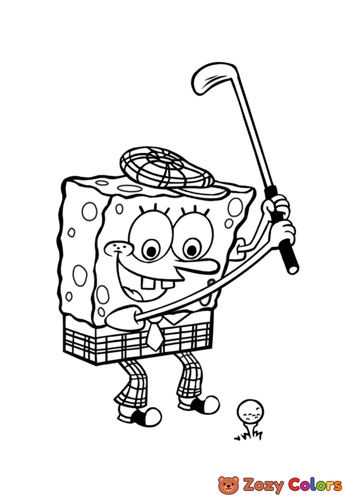 Sponge Bob golfing. Coloring page to print or download and color for your kids.