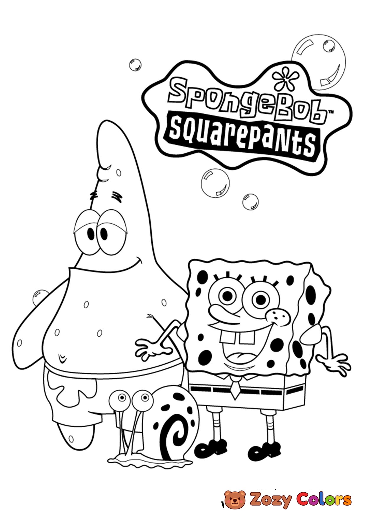 SpongeBob, Patrick and Gary hanging out - Coloring page to print or download and color.